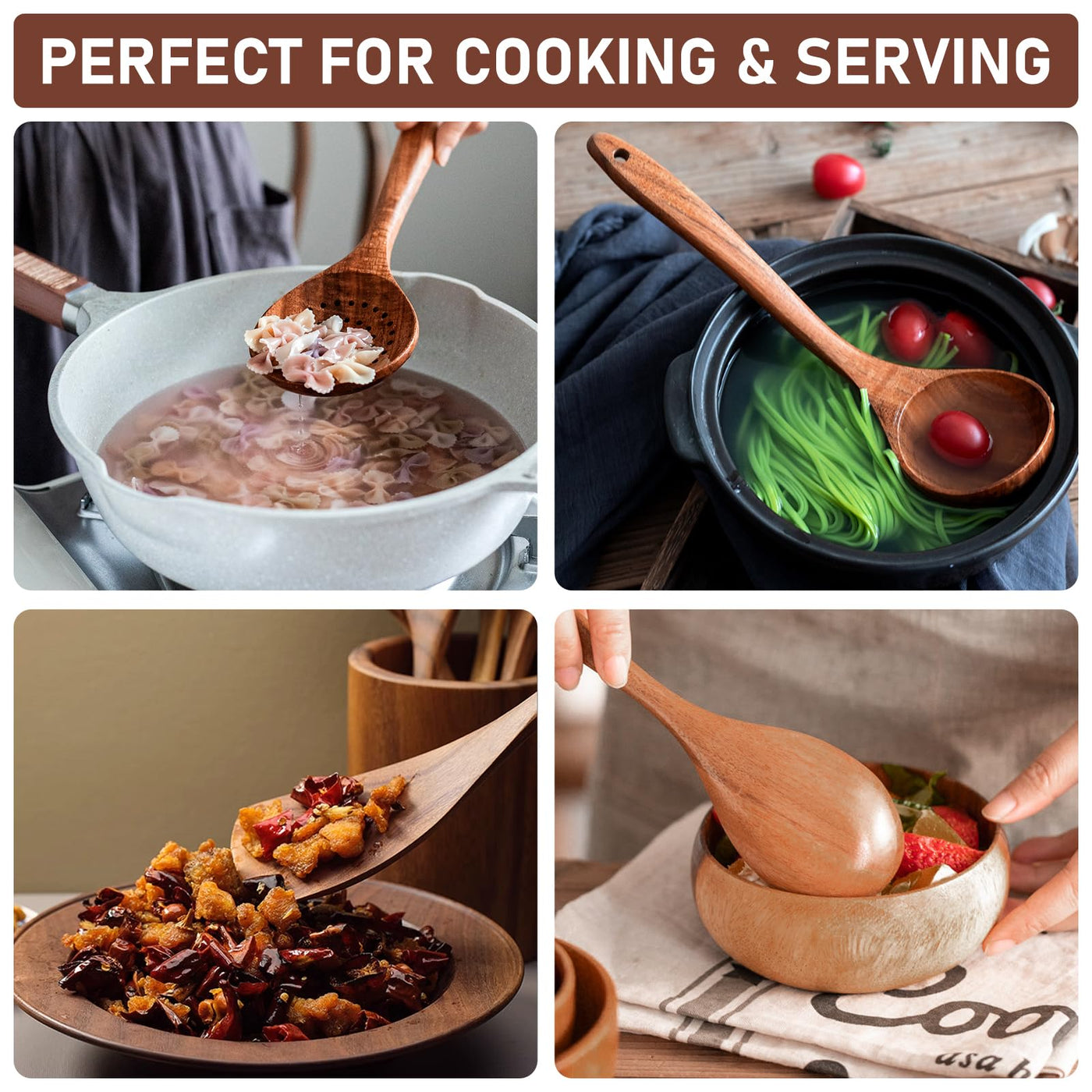 - Q: What is the advantage of using wooden utensils in cooking? A: Wooden utensils, like these, do not react with food, are gentle on cookware, and provide a comfortable grip during use.