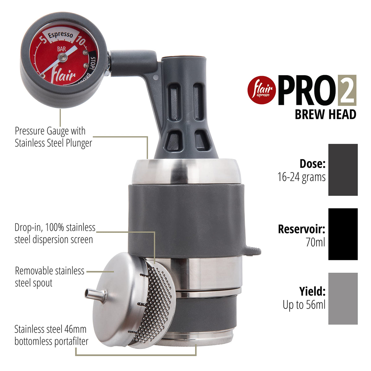 Flair Espresso Maker Pro 2 (Black) - An All Manual Lever Espresso Maker With Stainless Steel Brew Head And Pressure Gauge