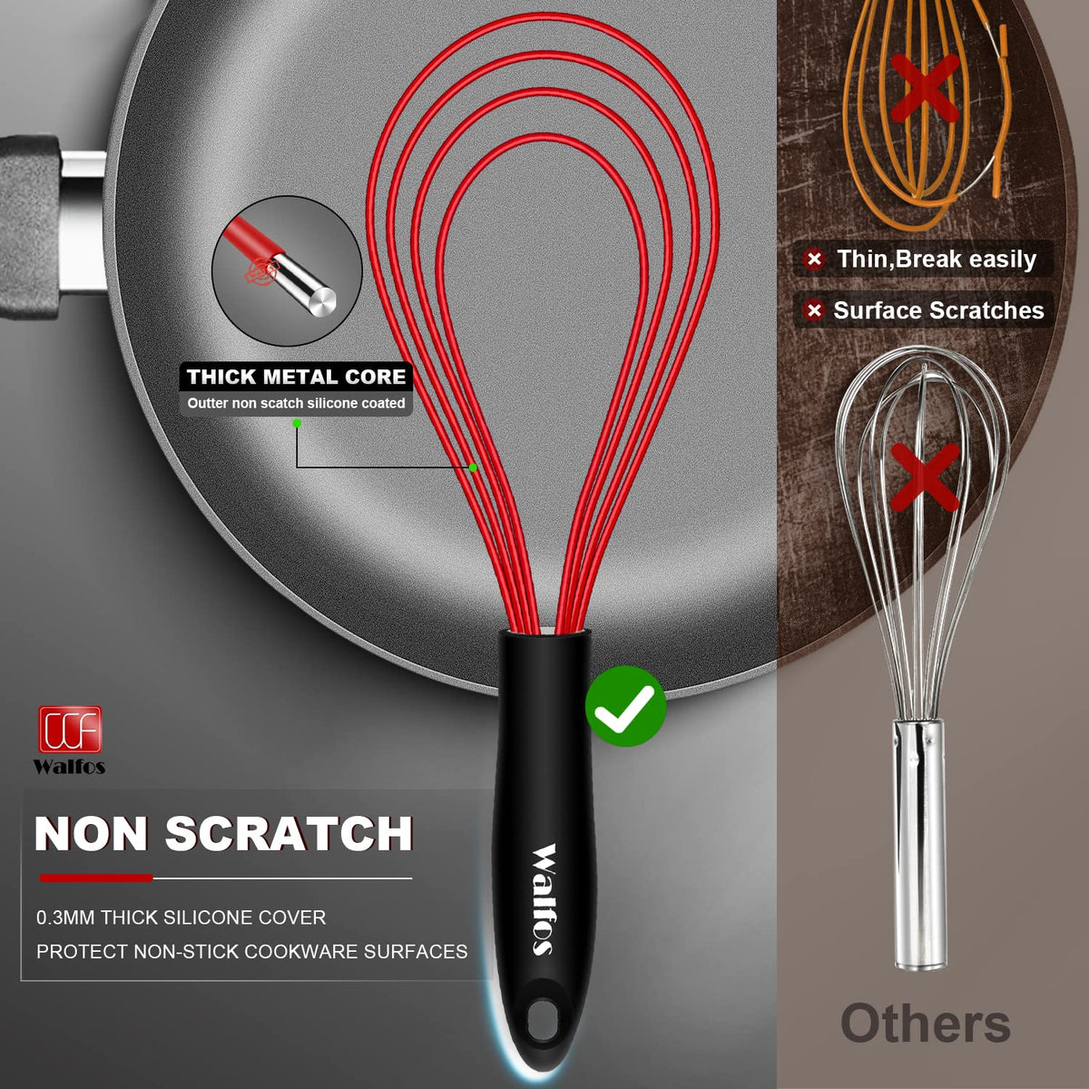Flat Silicone Whisk, Walfos 11 ' ' Wires Silicone Whisk For Blending Beating Stirring And Kitchen Cooking