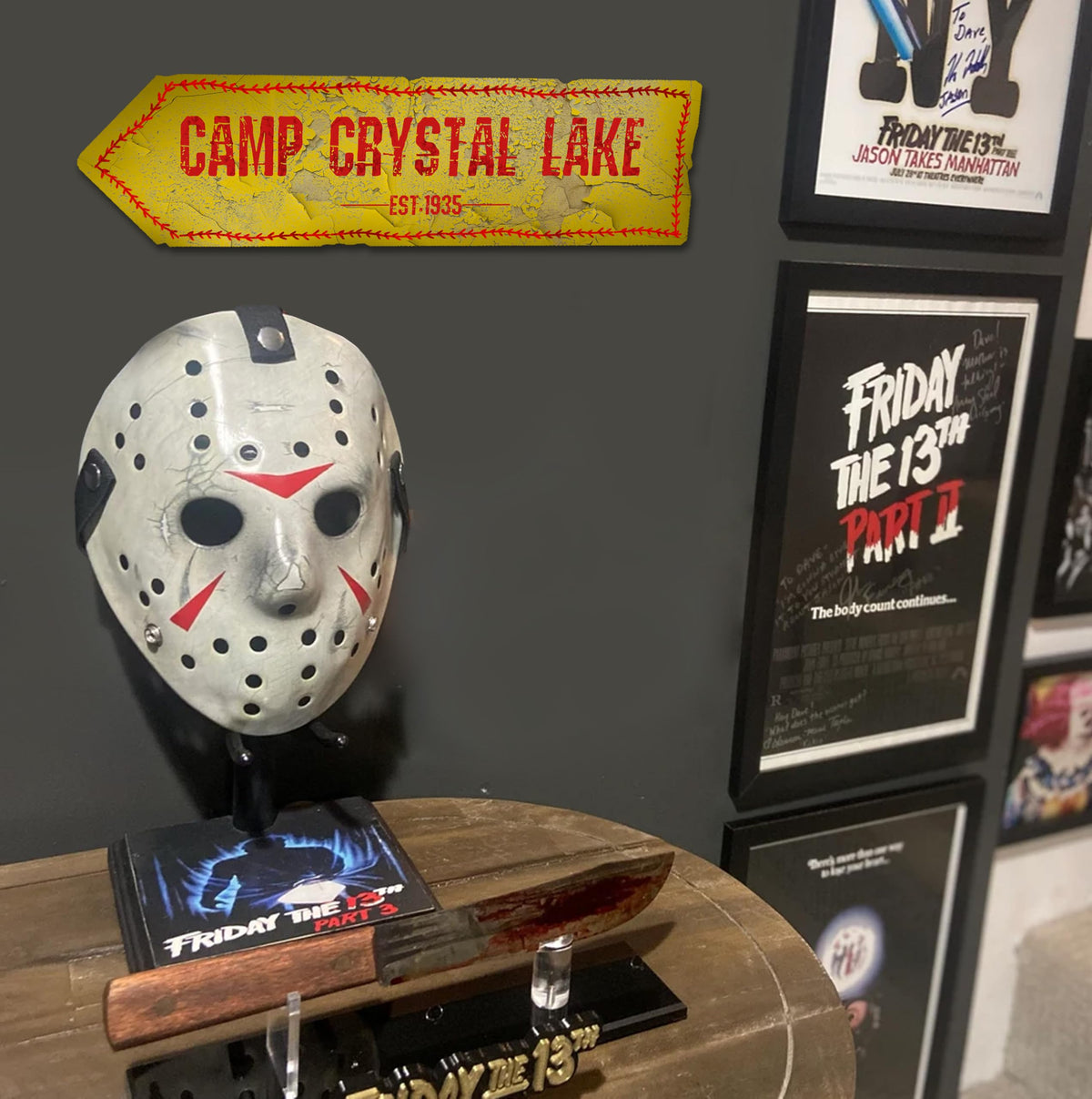 UNIQUE VINTAGE METAL HORROR MOVIE SIGNS DECOR : This is for a vintage style hanging wall plaque of Elm St from Nightmare on Elm Street. This can be a great addition to a Halloween, Holiday or Wreath. Great for collection to show your horror pride, Great horror tin sign on display to room, man cave, etc