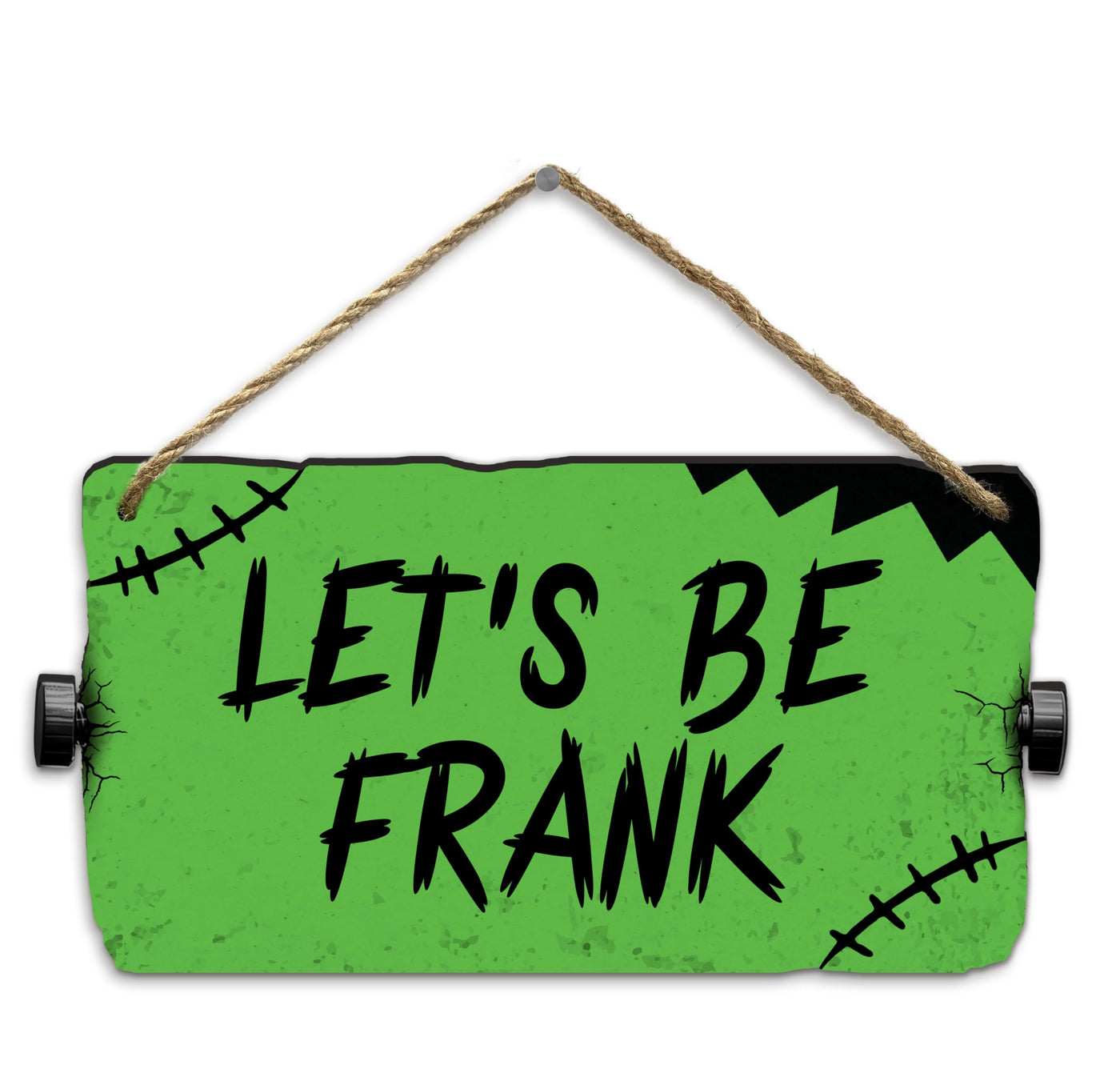 UNIQUE HORROR MOVIE SIGNS DECOR : This Let's Be Frank Wood Sign can be a great addition to a Halloween, Holiday or Wreath. Great for collection to show your horror pride, Great horror tin sign on display to room, man cave, etc, Fun for the horror movie junkies!