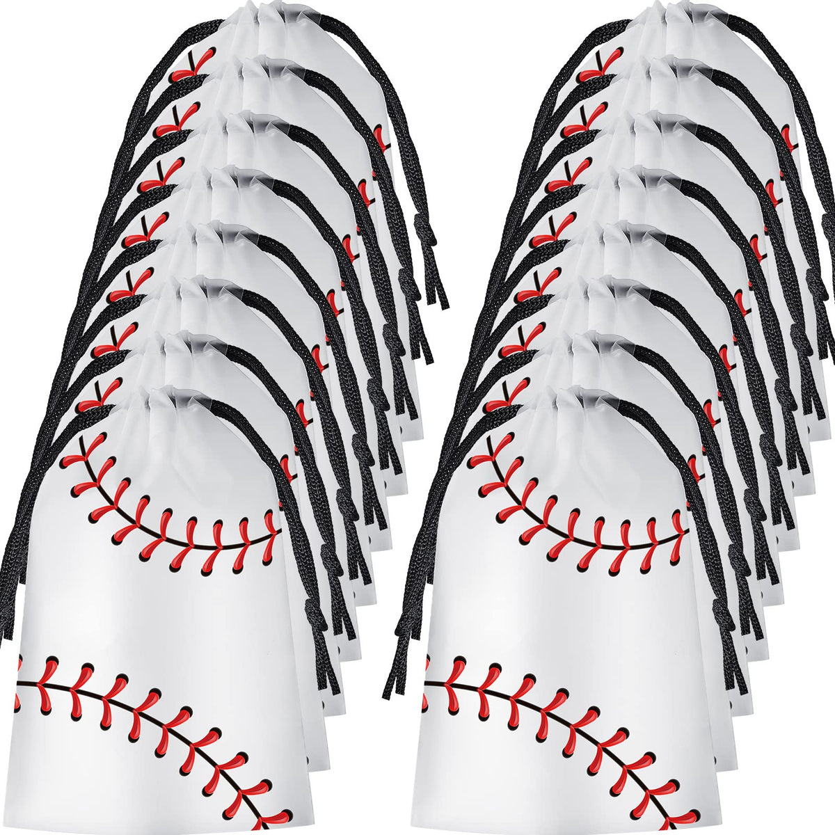 Flutesan 50 Pack Drawstring Baseball Party Favor Bags Plastic Baseball Snack Bags Baseball Goodie Bags Baseball Gift Bags For Ki