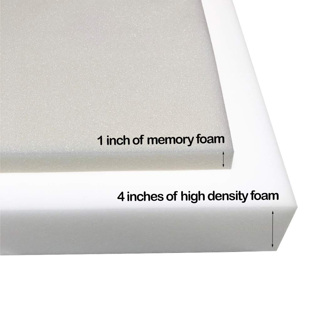 - Q: What type of foam is used in this mattress? A: The mattress consists of 1 inch of high-quality memory foam on top of 4 inches of high-density foam, providing premium comfort and support.