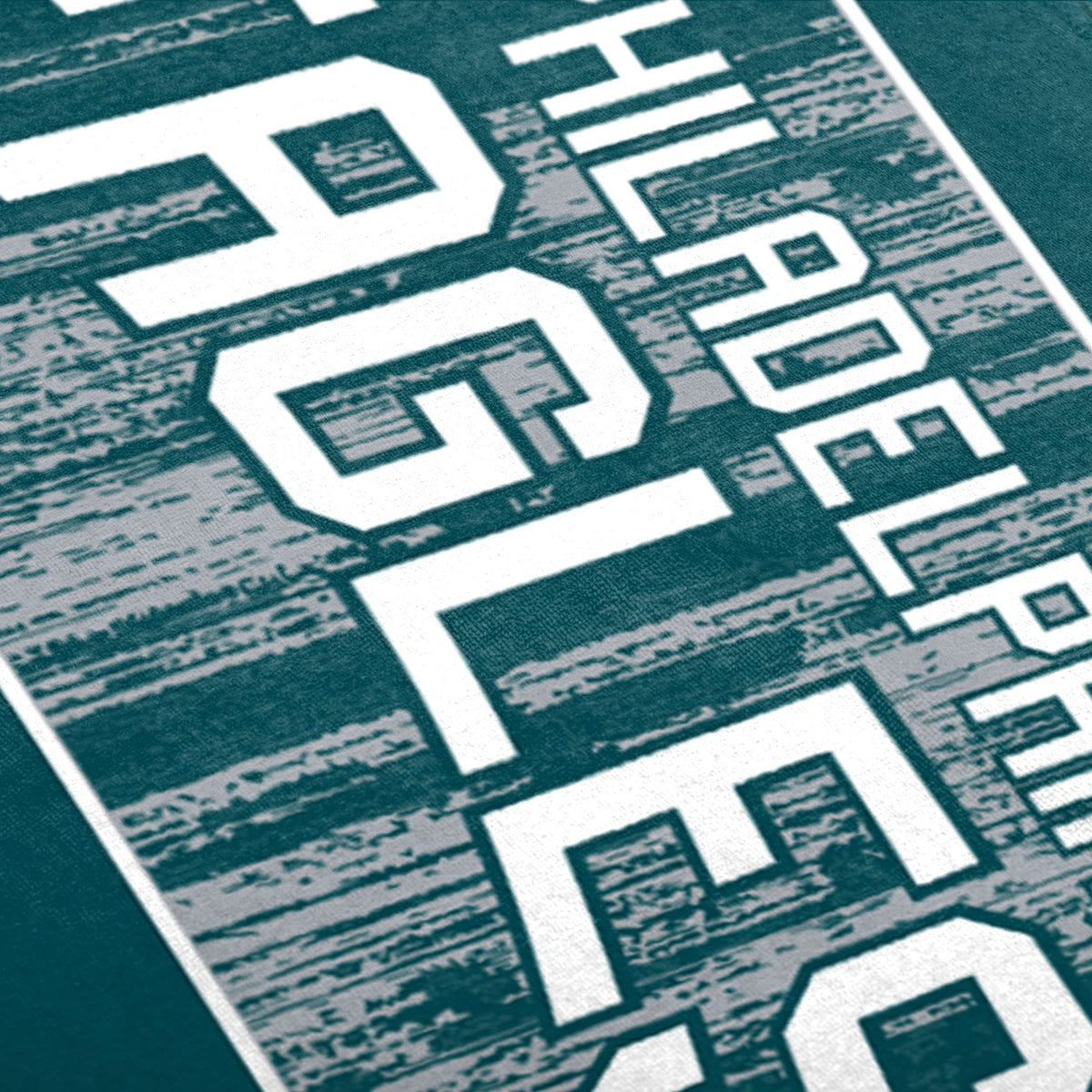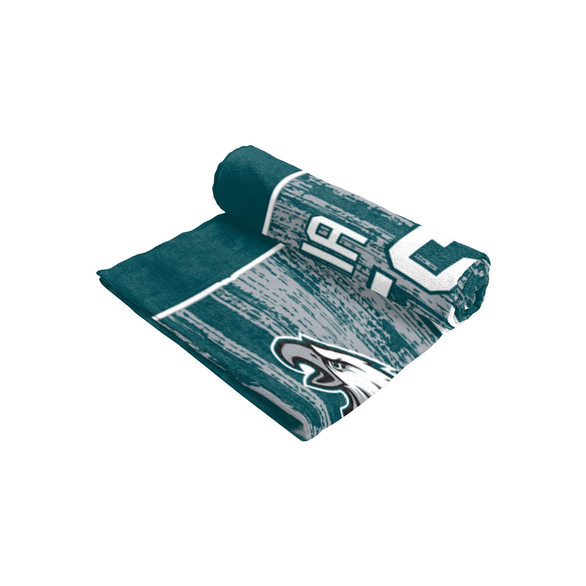 • Q: Does the towel have a bold team logo? A: Yes, the towel prominently features a bold Philadelphia Eagles team logo.