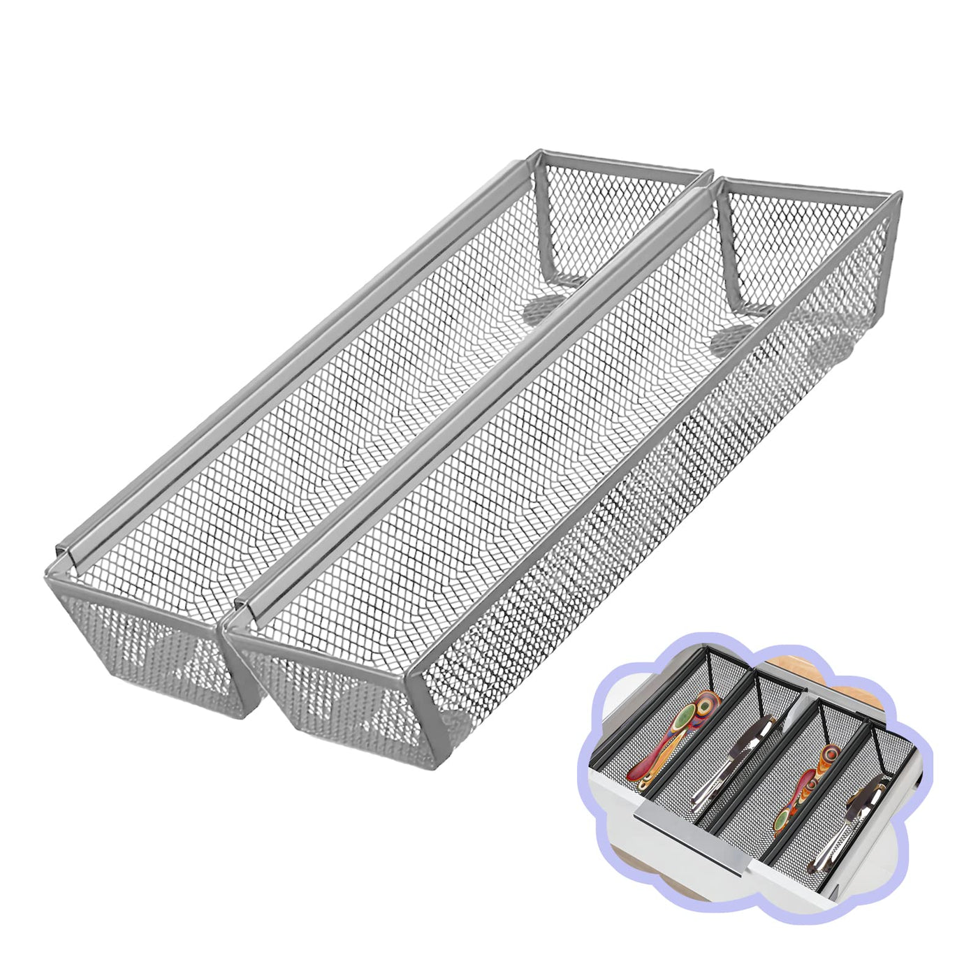 Fodofodo 2Pcs Drawer Organizer,Drawer Organizer For Kitchen,Utensil Mesh Drawer Organizer With Interlocking Arm For Cosmetic,Fla