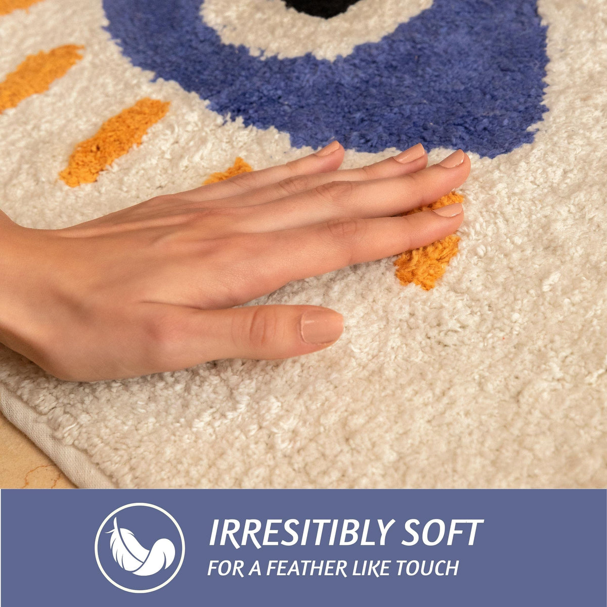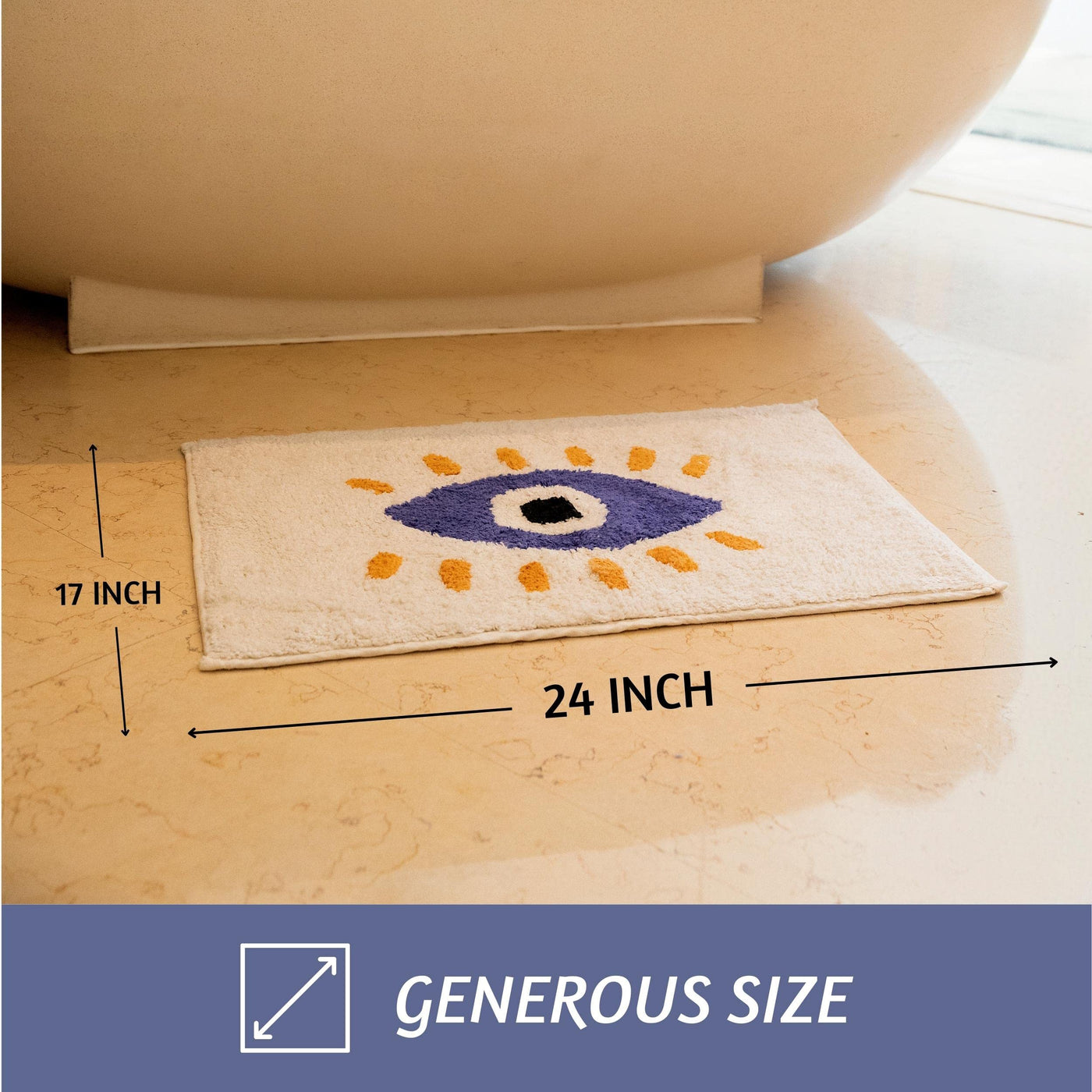 - Q: What is the design of the bath mat? A: The bath mat features a small boho evil eye design, adding a stylish touch to your bathroom decor.