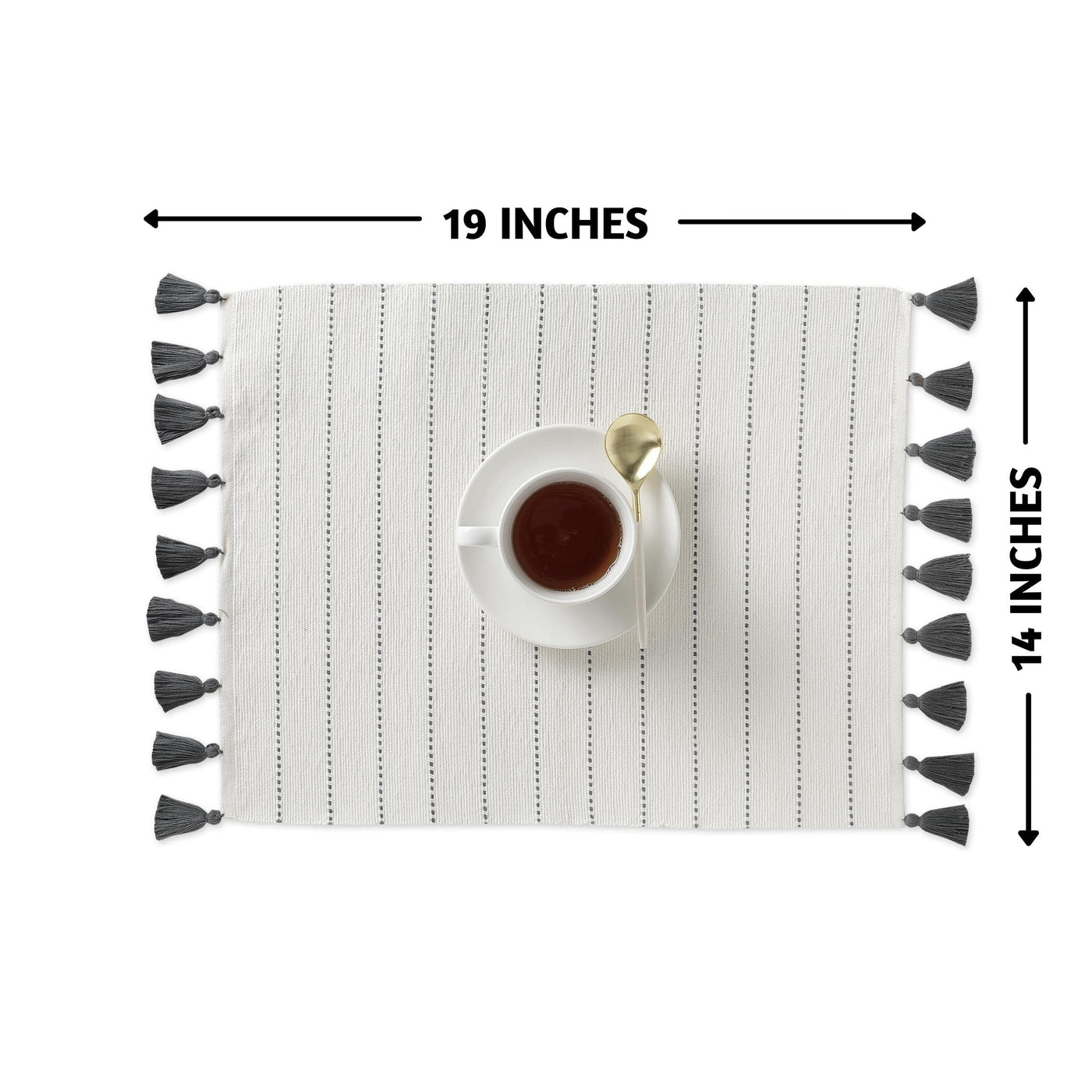 Folkulture Placemats Set Of 6, 100% Cotton Ribbed Place Mats 14 X 19 Inches With Cute Tassels, Table Mats For Farmhouse Table De