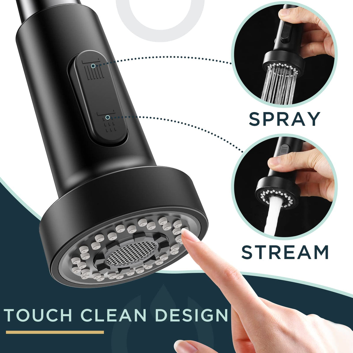 FORIOUS Black Kitchen Faucet with Pull Down Sprayer Commercial Spring Kitchen Sink Faucet with Pull Out Sprayer Single Handle Kitchen faucets with Deck Plate Matte Black