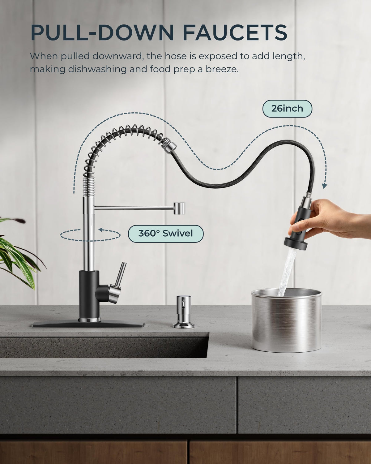 Forious Kitchen Faucet, Kitchen Sink Faucets With Pull Down Sprayer, Commercial Spring Kitchen Sink Faucet Stainless Steel, Sing