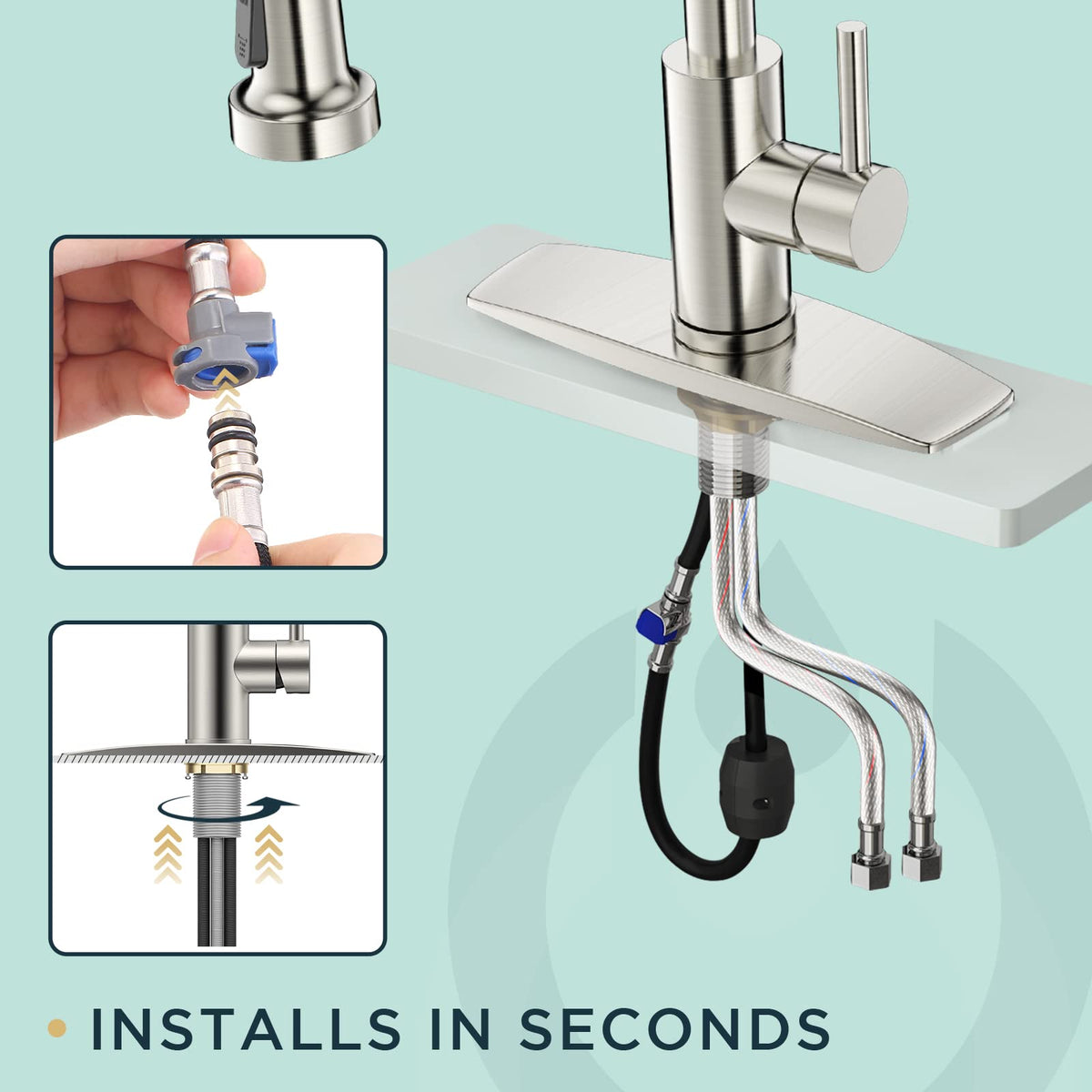 FORIOUS Kitchen Faucet with Pull Down Sprayer Commercial Spring Kitchen Sink Faucet with Pull Out Sprayer Single Handle Kitchen faucets with Deck Plate Brush Nickel