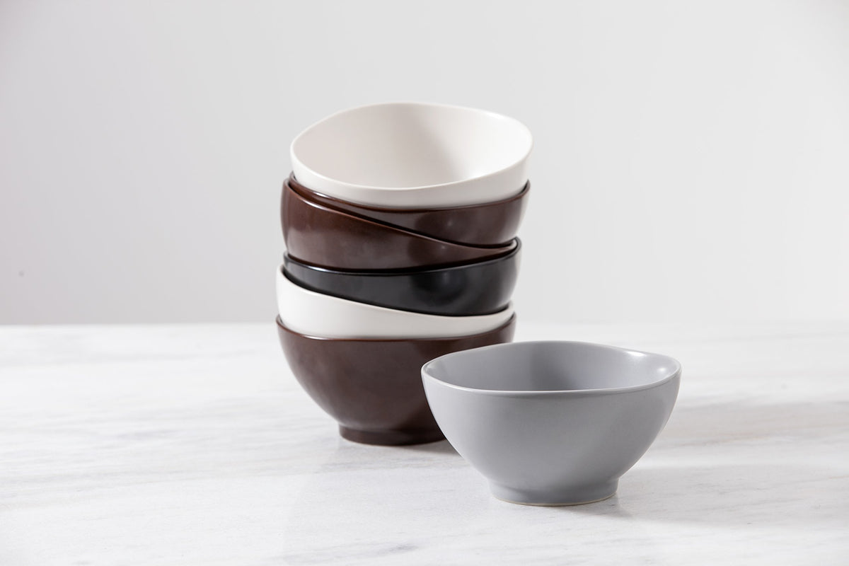 • Q: What is the finish of the rice bowls? A: The rice bowls feature a matte charcoal gray finish, giving them an elegant and modern look.