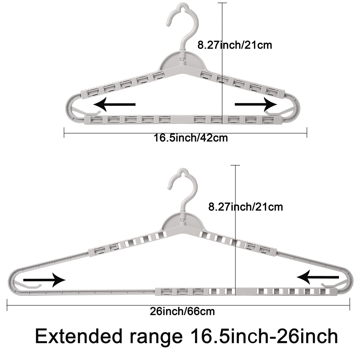 Foshine 4 Pack Extra Large Hangers Big Clothes Hangers Enlarge Adjustable Shoulder 16.5''-26'' Drying Hanger Sturdy For Wide Pol