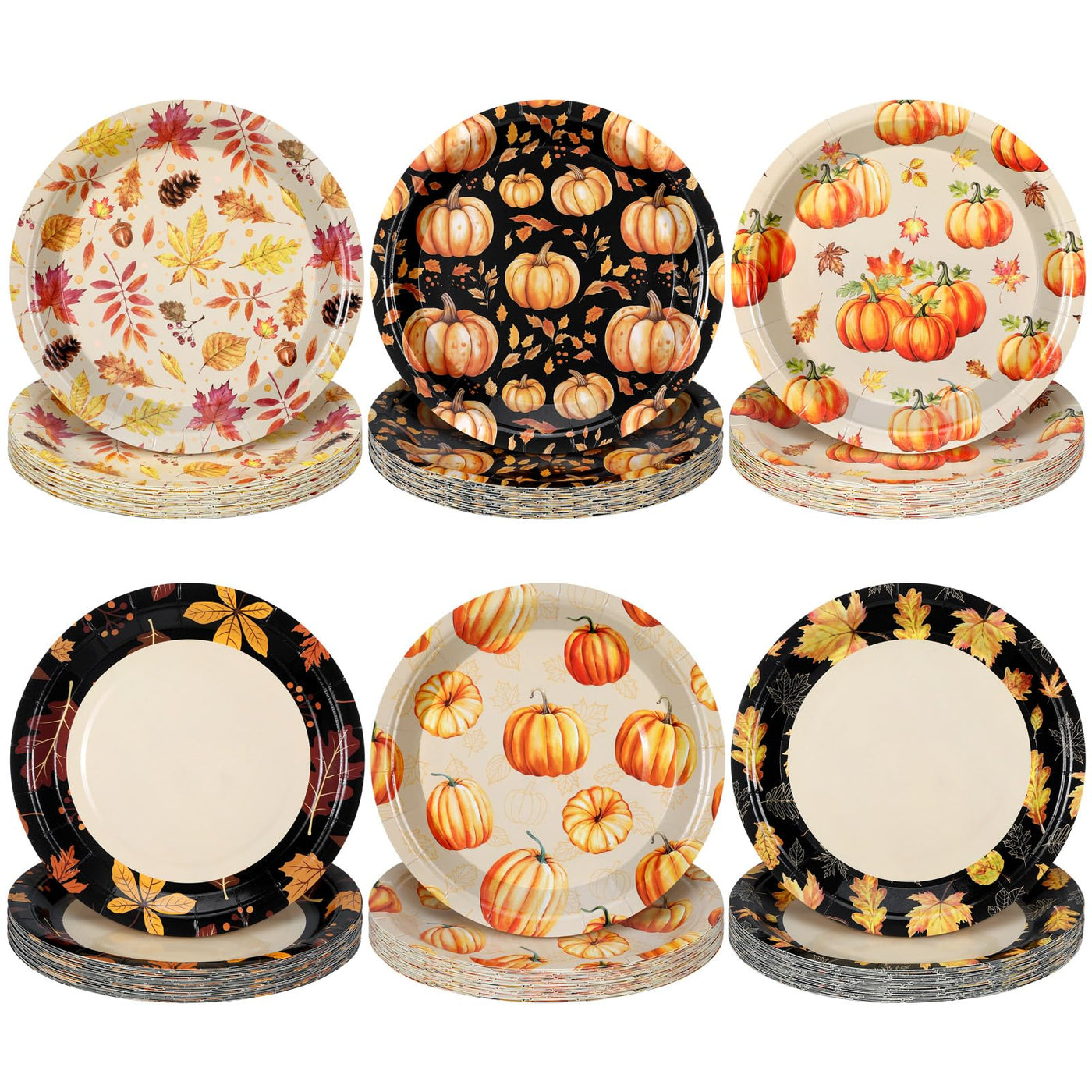 Fourluoo 96 Pcs Thanksgiving Fall Paper Plates Disposable 7 Inch Maple Leaf Pumpkin Style Plates for Autumn Thanksgiving Day Par