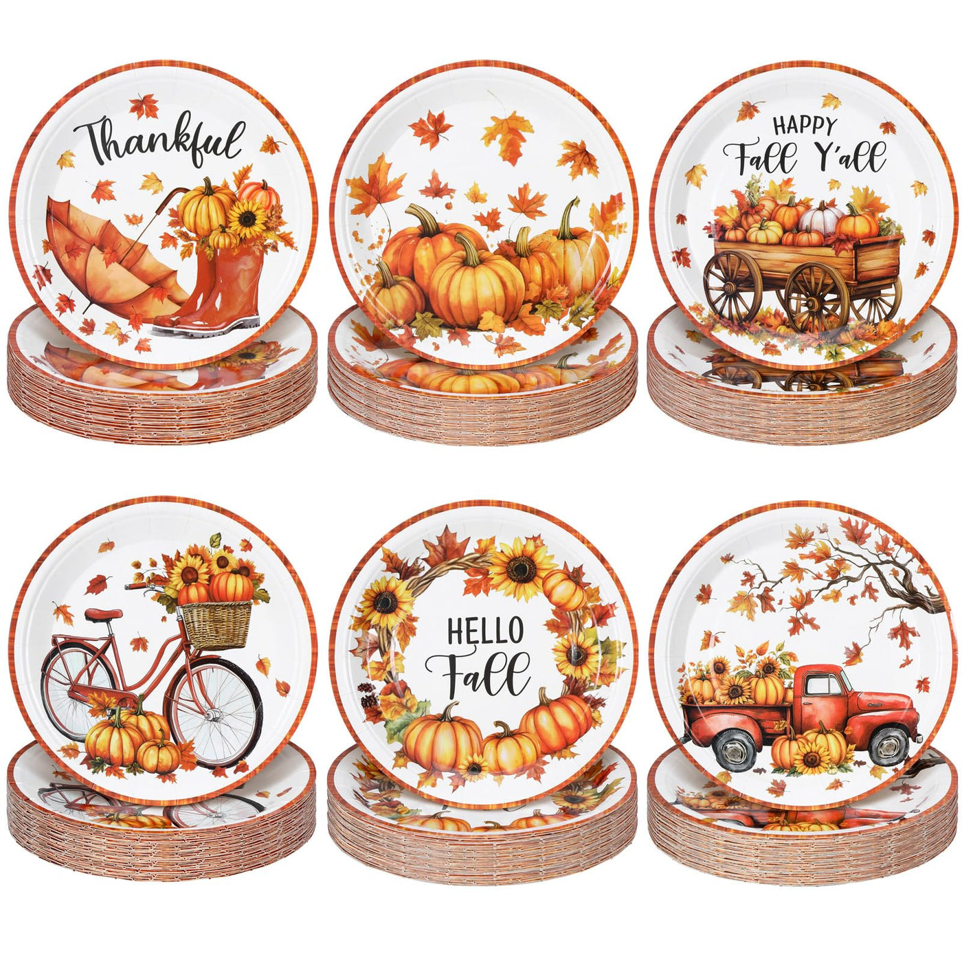 Fourluoo 96 Pcs Thanksgiving Pumpkin Paper Plates Disposable 7 Inch Pumpkin Dinner Plates for Thanksgiving Fall Party Birthday P