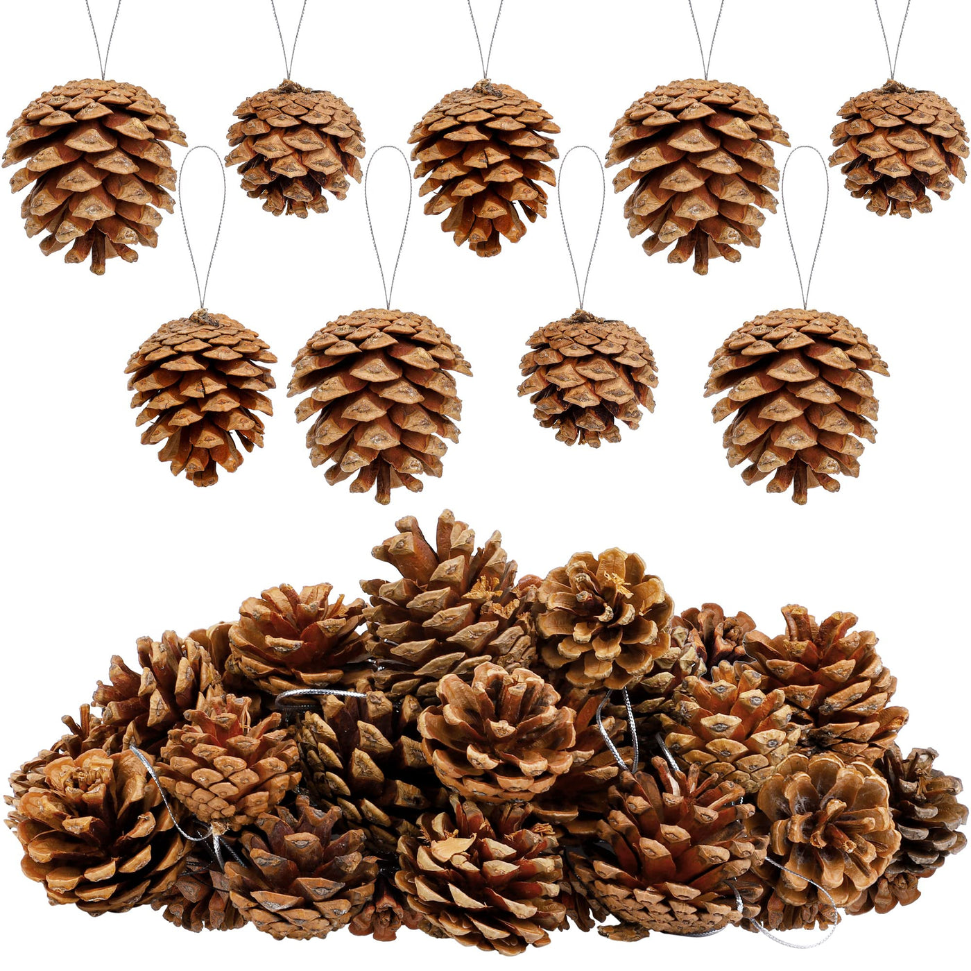 Fovths 30 Pieces 2 Size Christmas Pine Cones with String Mini Rustic Pinecones Bulk Ornaments for Xmas Tree Crafts Holiday Home