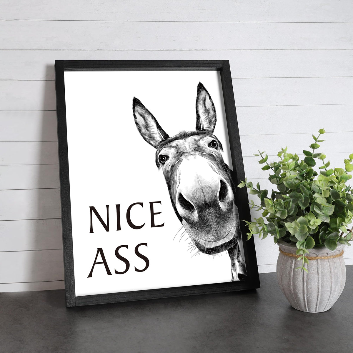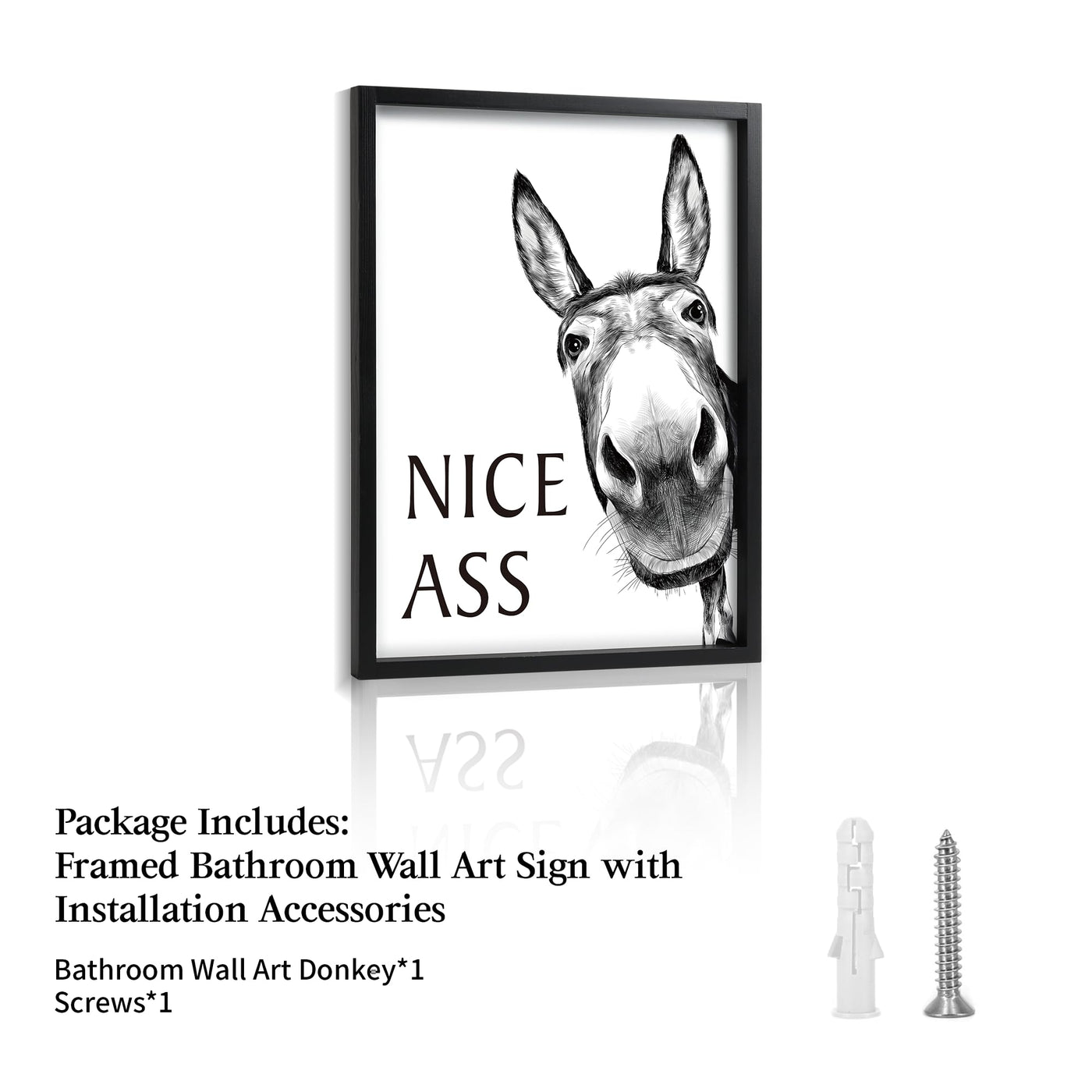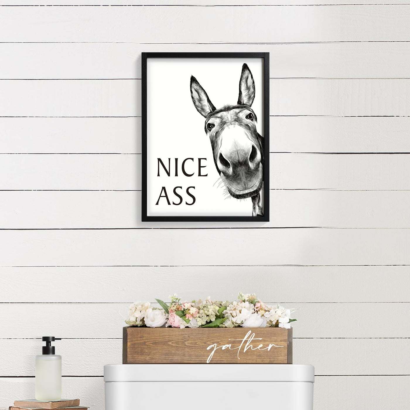 Framed Bathroom Wall Art, Donkey In Bathroom For Bathroom Wall Decor Farmhouse Home Bathroom Decor Sets Funny Bathroom Signs (8'