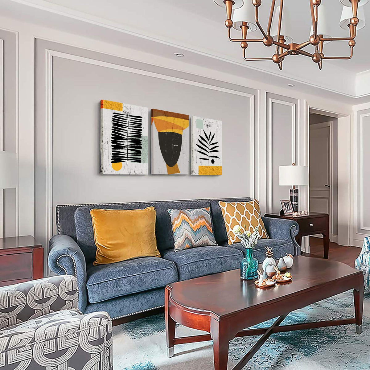 - Q: What is the style of this wall art? A: The wall art features an abstract ethnic motif, showcasing an African American woman portrait, which complements contemporary and minimalist decor.