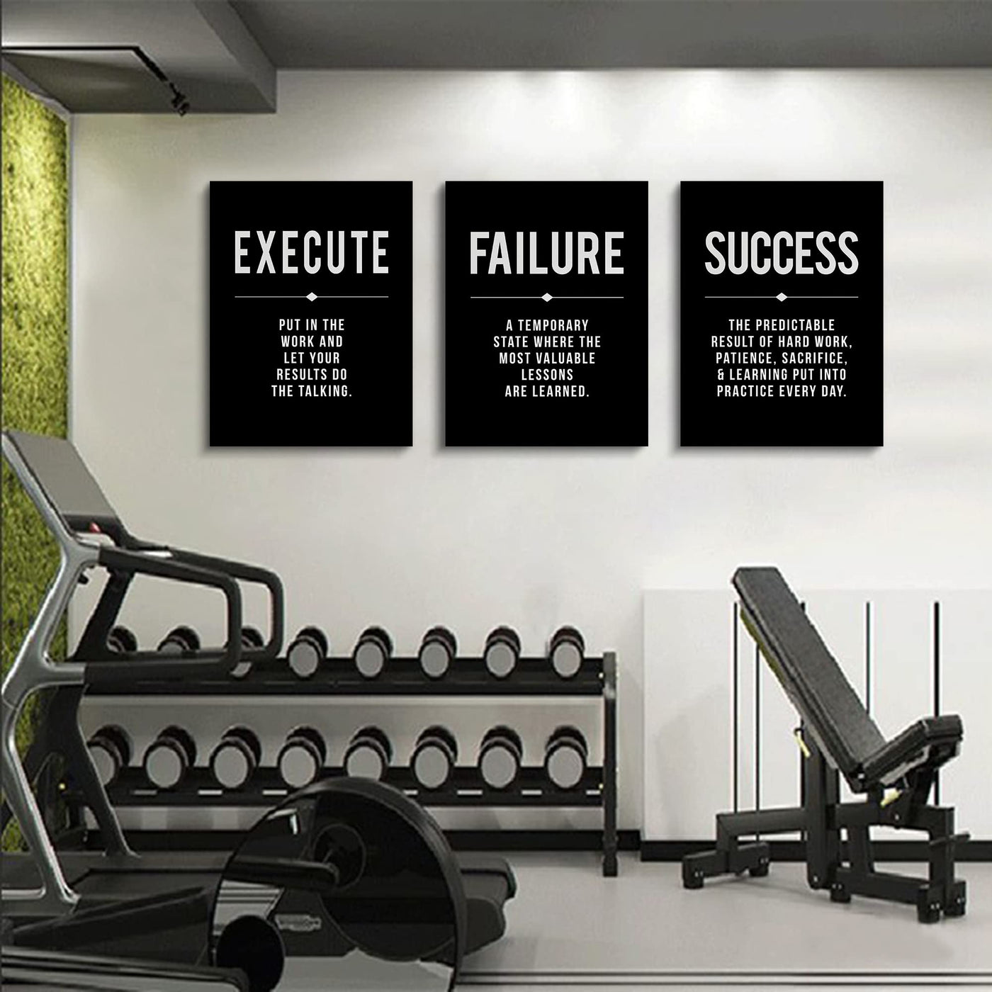 Framed Canvas Wall Art Success Quote For Office, Black Large Positive Motivational Poster, Set Of 3, Execute Failure Definition,