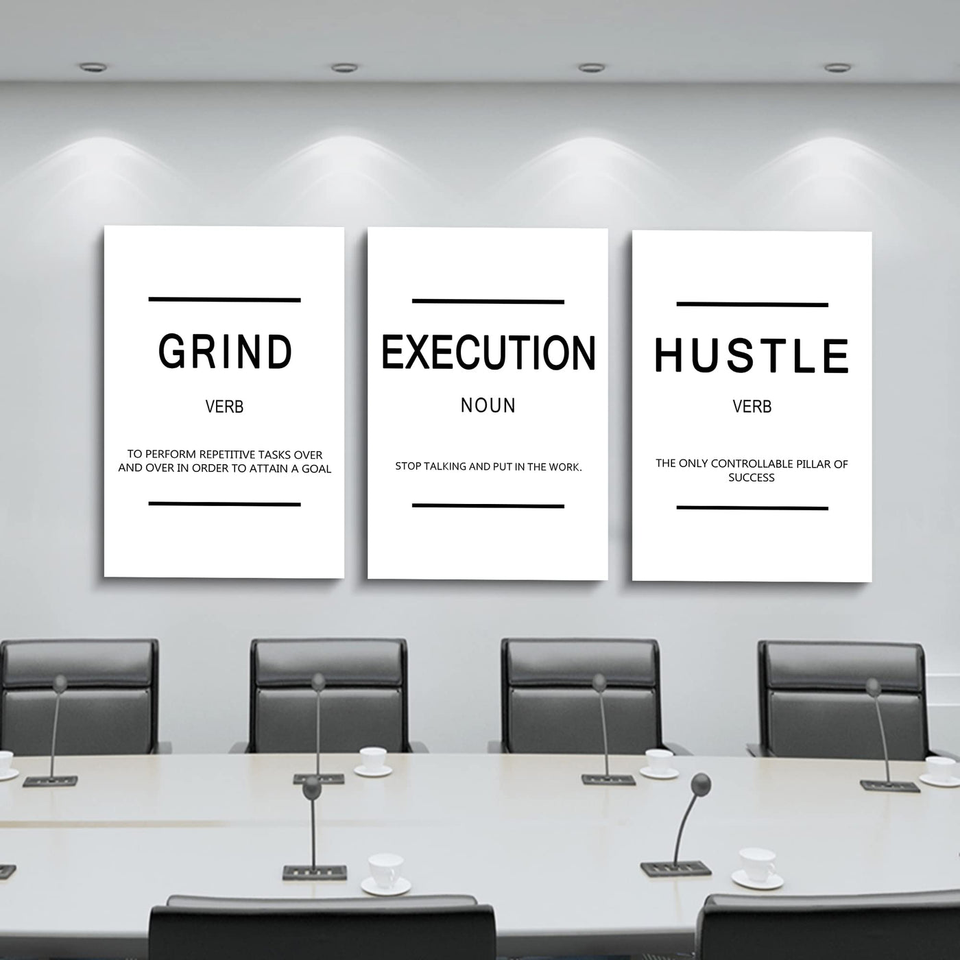 Framed Canvas Wall Art Success Quote - Office Wall Art, White Large Poster, Positive Motivational Set Of 3 Prints, Execute Grand