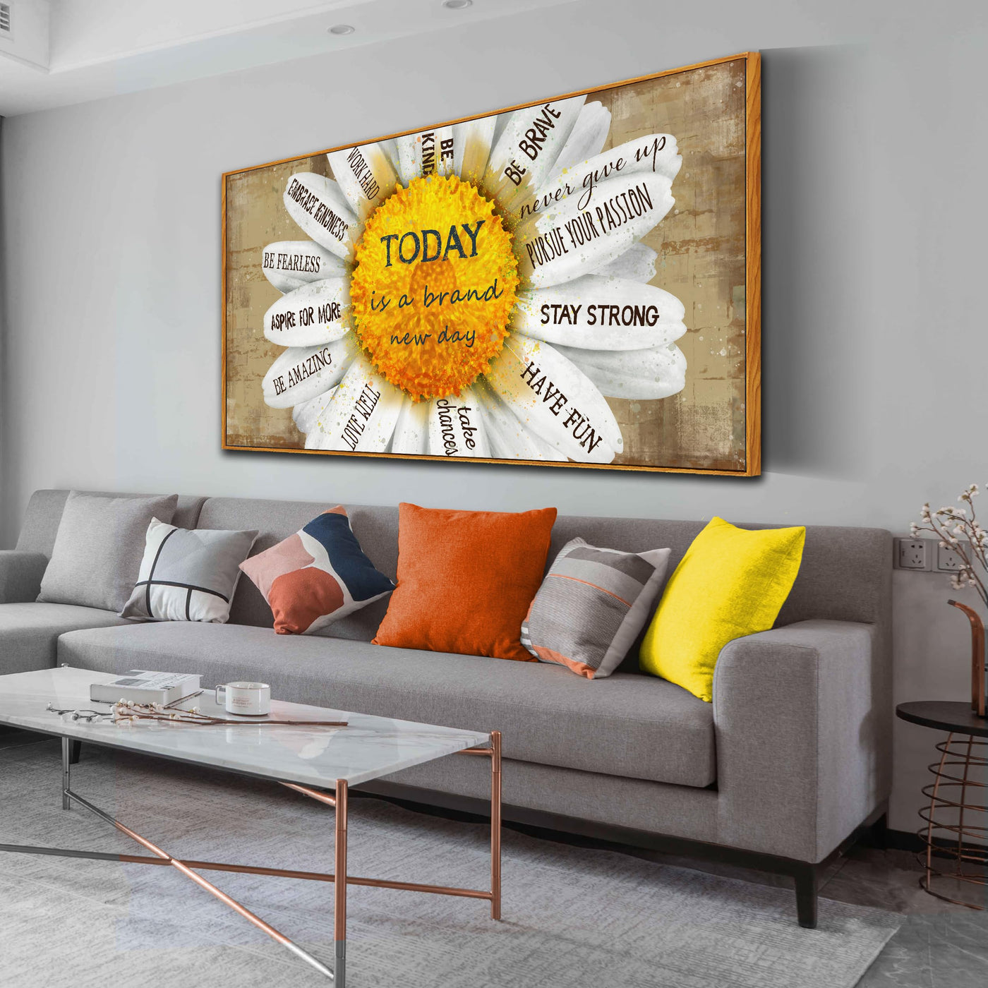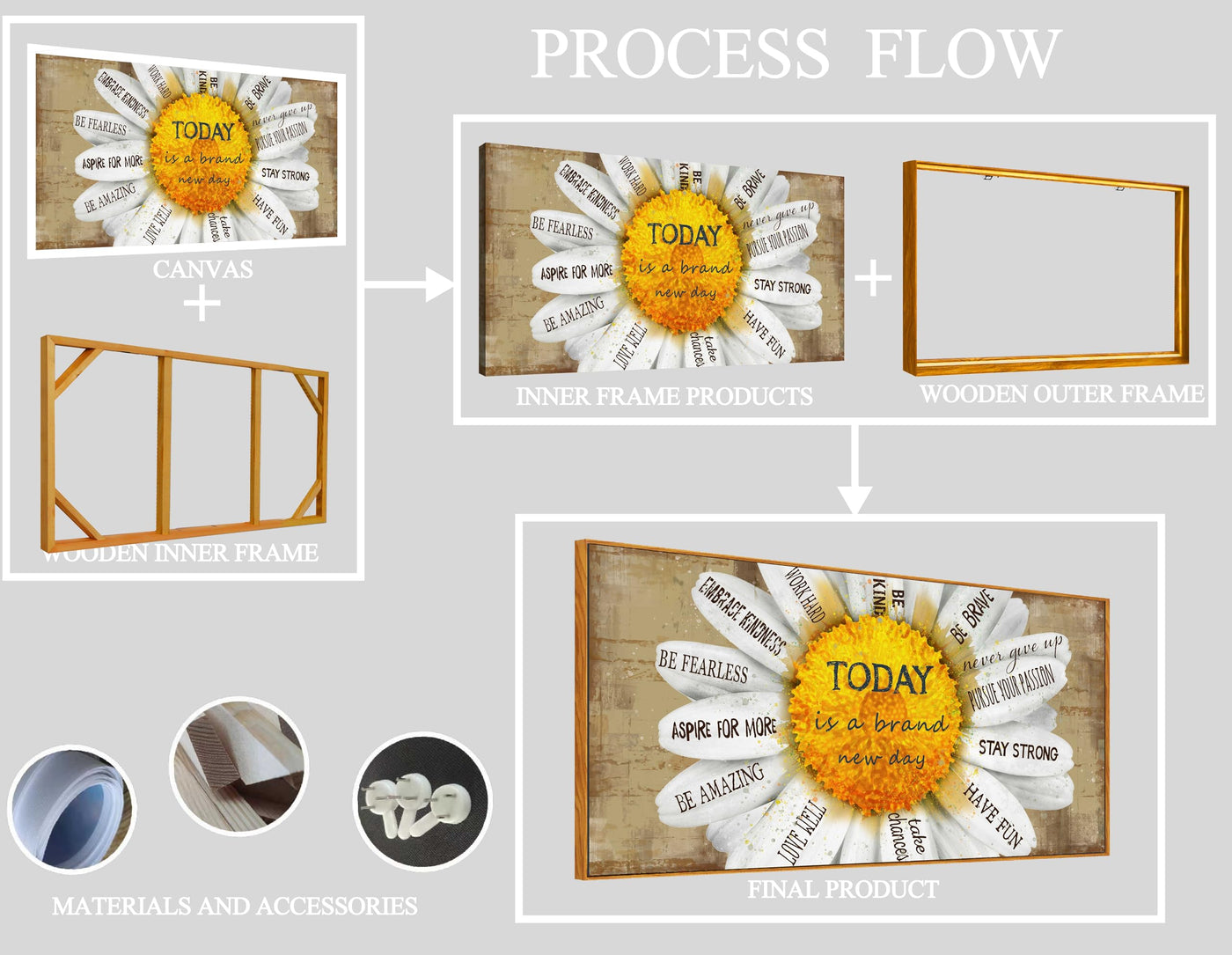- Q: What is the design theme of the canvas art? A: The design theme of the canvas art is inspirational, featuring bright yellow pictures and floral elements.