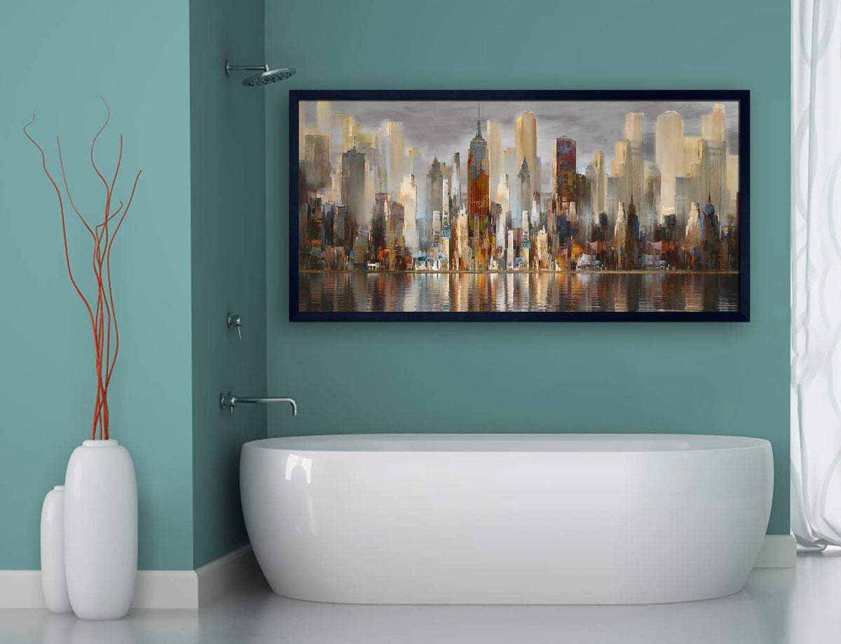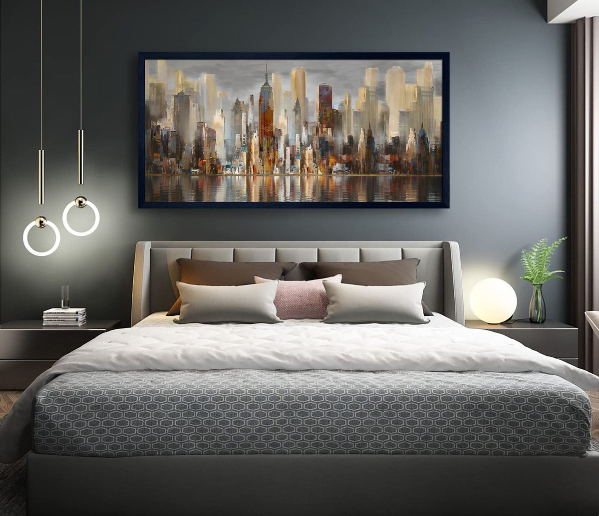 Framed Wall Art Large Cityscape New York Wall Decor Canvas Prints Abstract Brown City Theme Paintings Modern Canvas Wall Art For