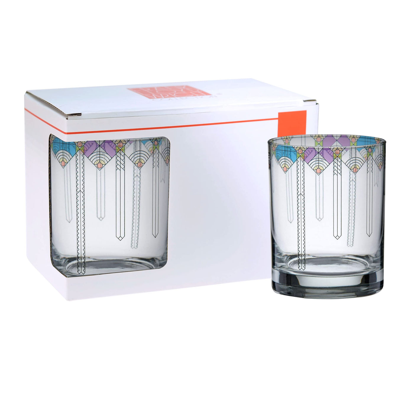 Frank Lloyd Wright Dof Double Old Fashioned Glass 14-Ounce (Gift Boxed Set Of 2, April Showers)