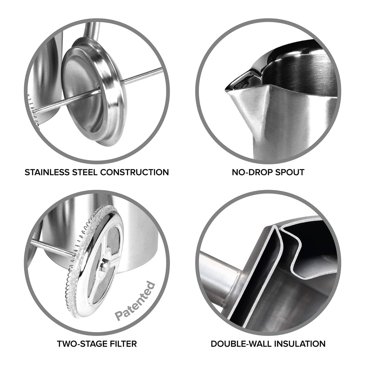 Frieling Double-Walled Stainless-Steel French Press Coffee Maker - Brushed 17 Ounces - Camping French Press - Stainless Steel Co
