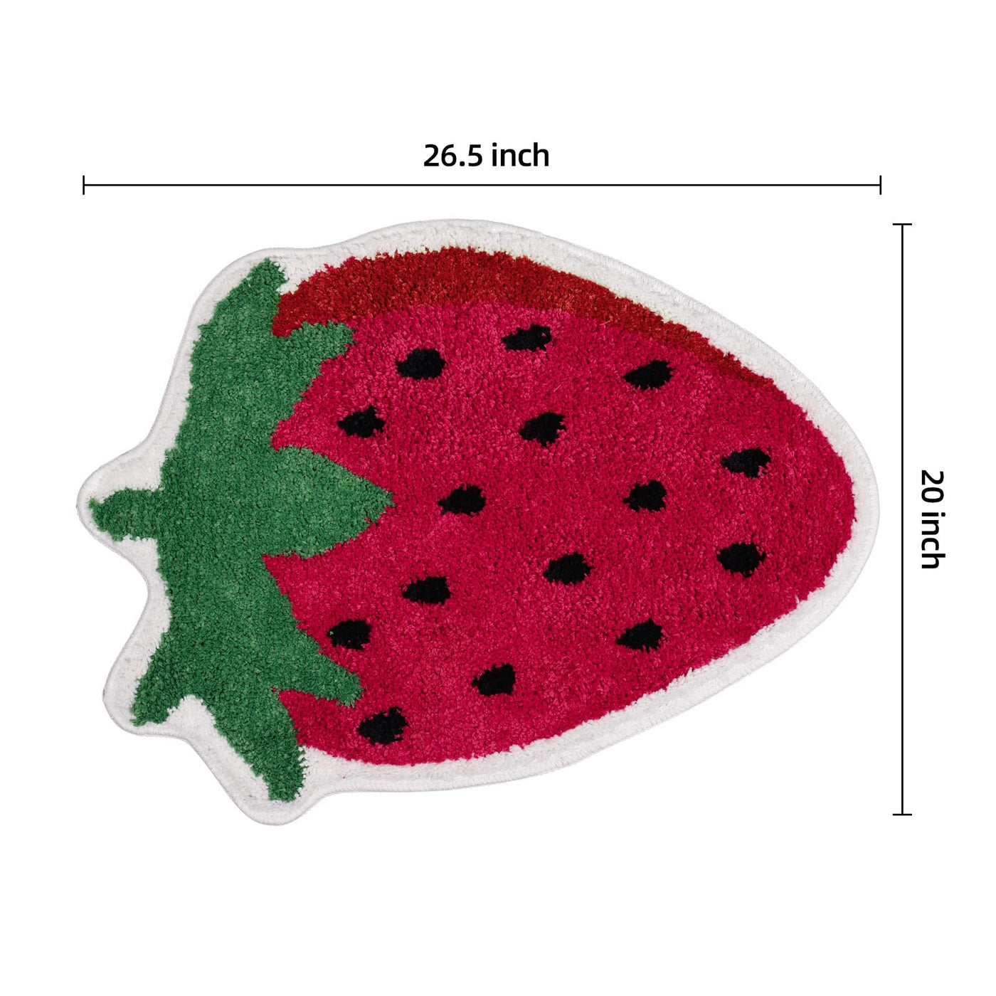 • Q: What are the dimensions of the FROZZUR Strawberry Bathroom Rug? A: The FROZZUR Strawberry Bathroom Rug measures approximately 20 inches by 26.5 inches.