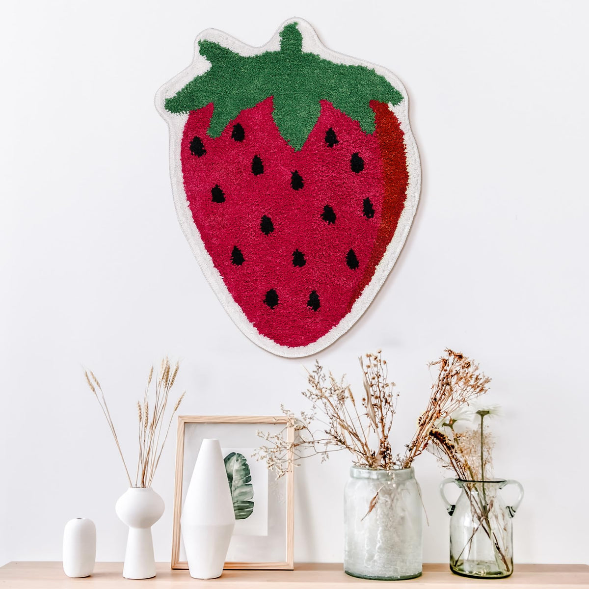 • Q: What is the design of the bathroom rug? A: The rug features a unique strawberry shape, adding a fun and vintage touch to your bathroom decor.
