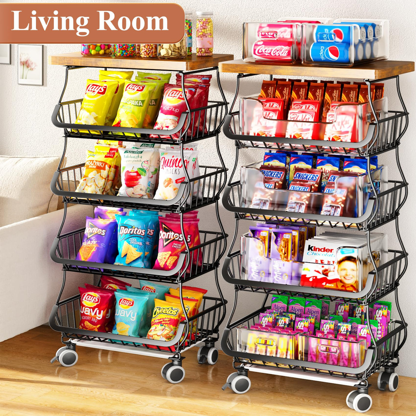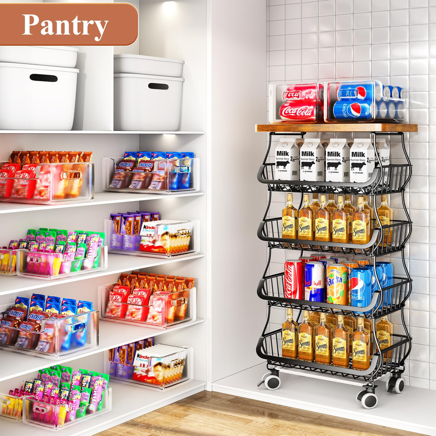 - Q: What is the capacity of the Fruit Basket Kitchen Pantry Organizer? A: The Fruit Basket Kitchen Pantry Organizer features a large capacity that includes 4 stackable metal baskets and a solid wood table, providing ample space for various kitchen and pantry containers.