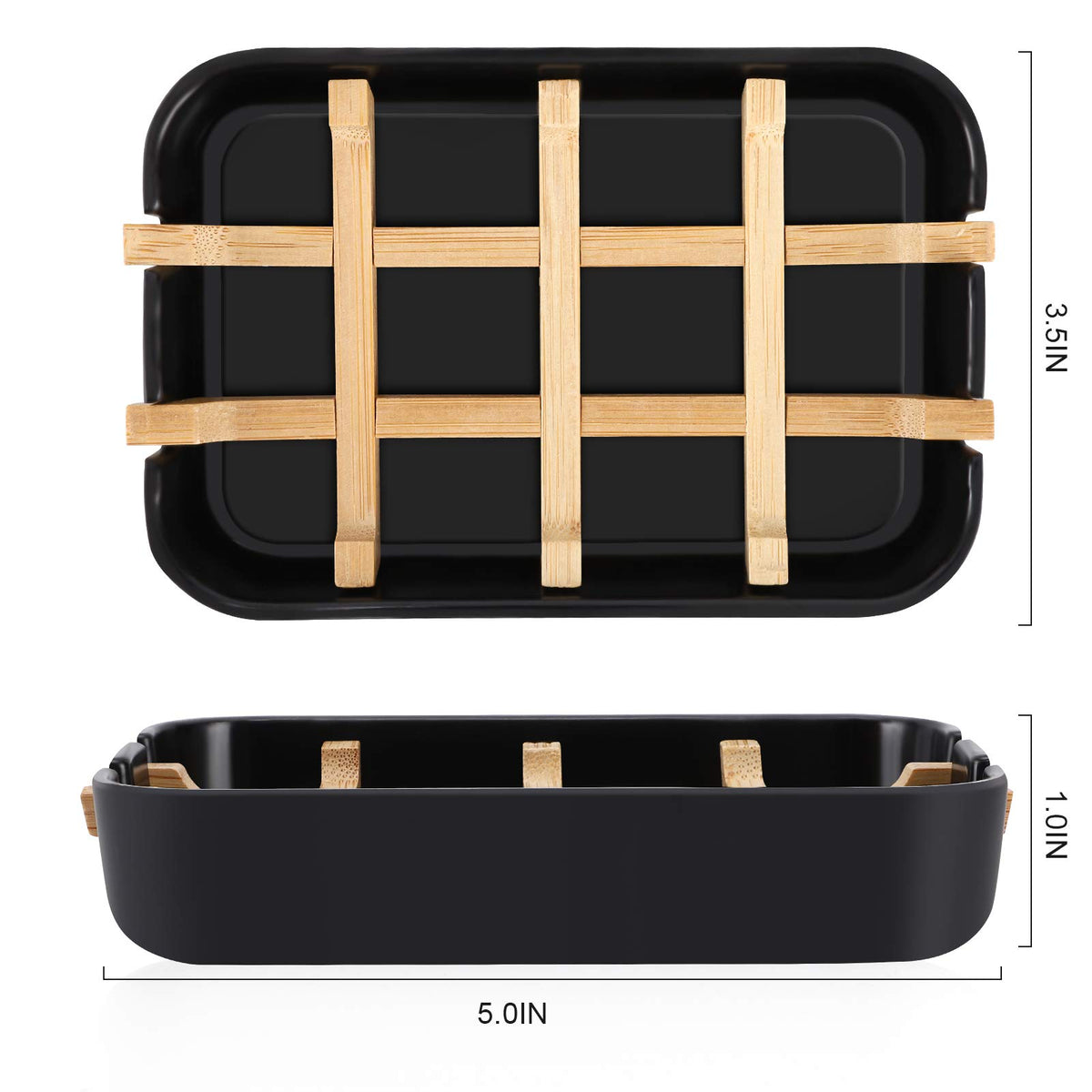 Fufengz Bamboo Wooden Soap Dishes For Bathroom Bar Soap Holder Shower Soap Holder Sink Deck Bathtub Shower Tray (Two Pieces Blac