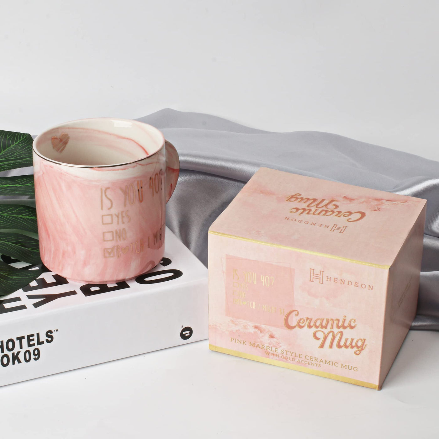 Funny 40th Birthday Gifts for Women - Turning 40 Year Old Birthday Bday Gift Ideas for Wife Mom Daughter Sister Aunt Best Friends Coworkers - Fabulous Pink Marble Mug Ceramic 11.5oz Coffee Cup