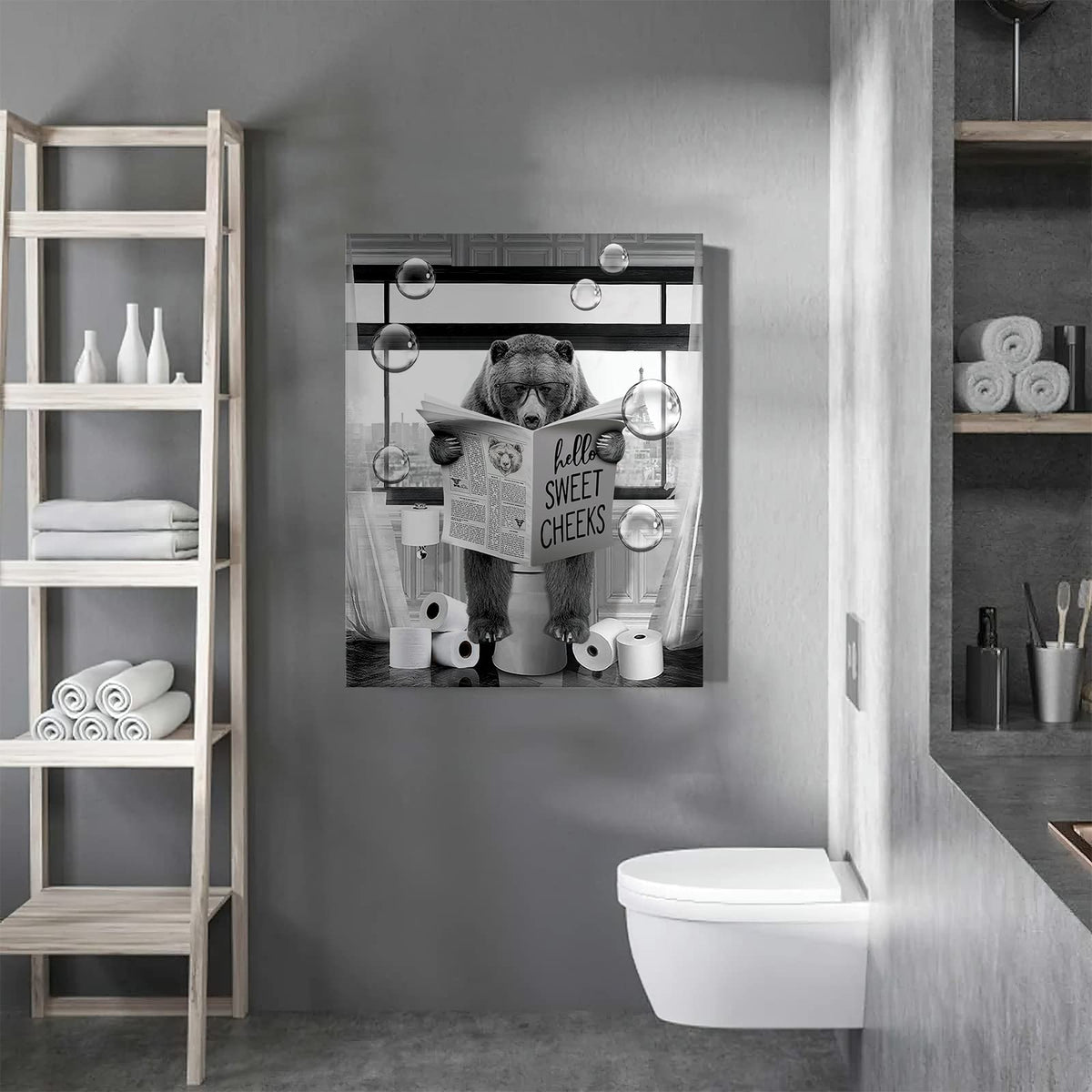 Funny Bear Wall Art Black And White Bear Bathroom Print Farmhouse Bathroom Animals Wall Decor Bear Sitting In Toilet Reading New