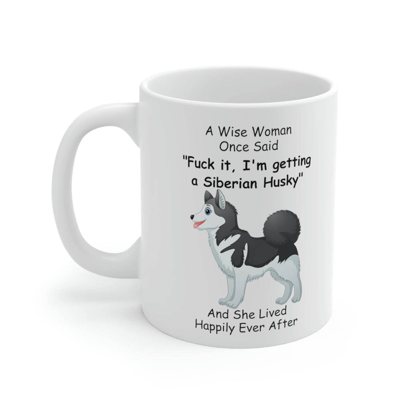 - Q: What is the capacity of the Funny Clip art Siberian Husky Dog Mom coffee mug? A: The ceramic coffee mug has a fluid capacity of 11 ounces.