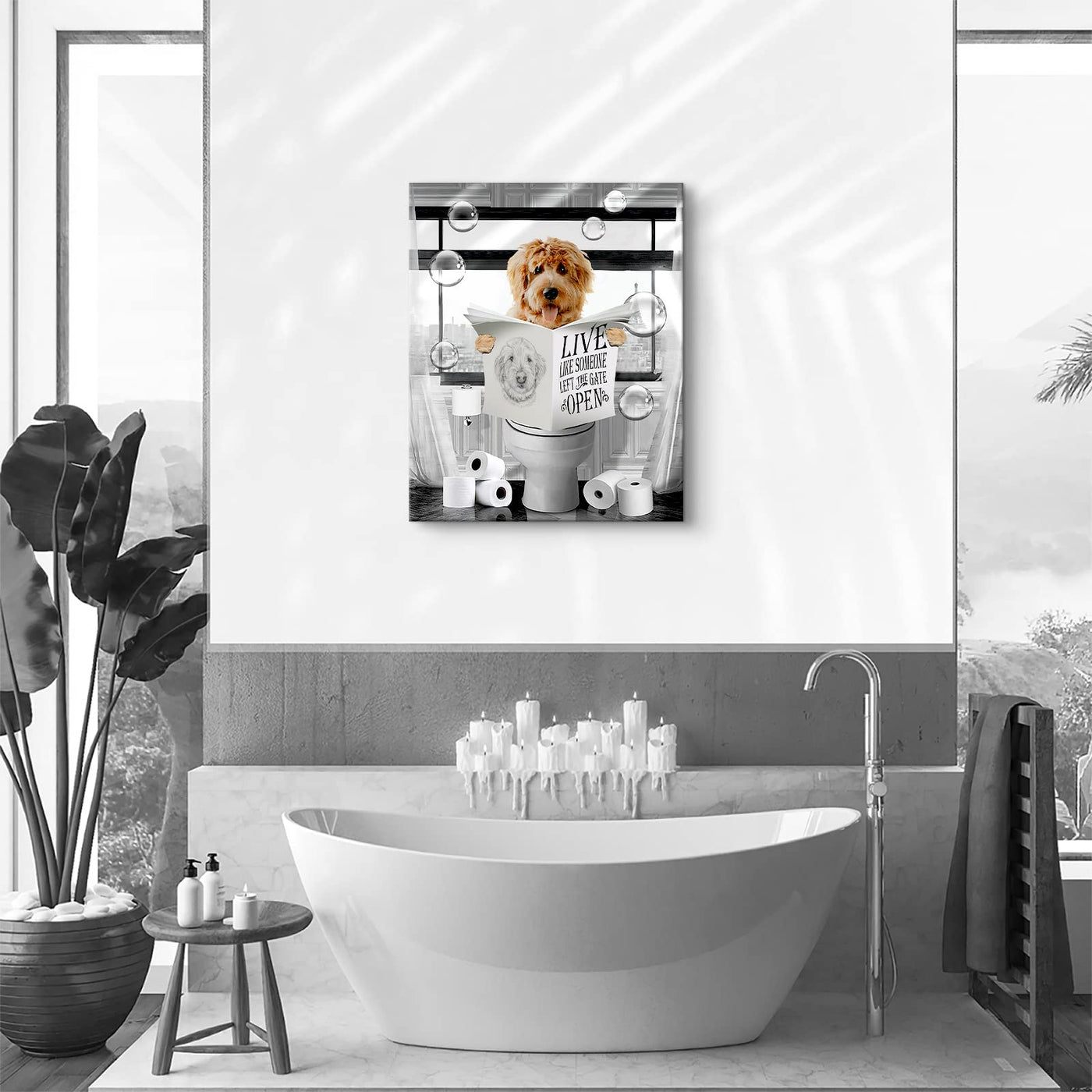Funny Dog Sitting In Toilet Bathroom Decor Wall Art Black And White Dog Pictures Farmhouse Bathroom Animals Painting For Toilet