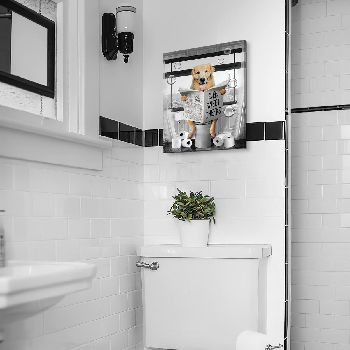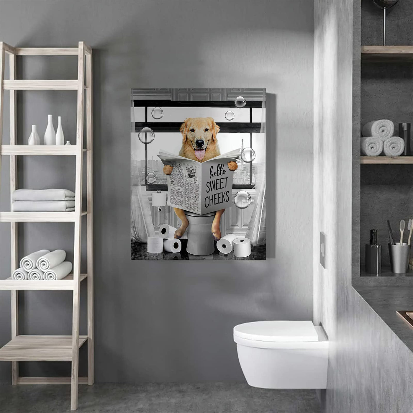 Funny Golden Retriever Wall Art Black And White Dog Bathroom Print Farmhouse Bathroom Animals Wall Decor Dog Sitting In Toilet R