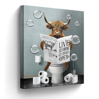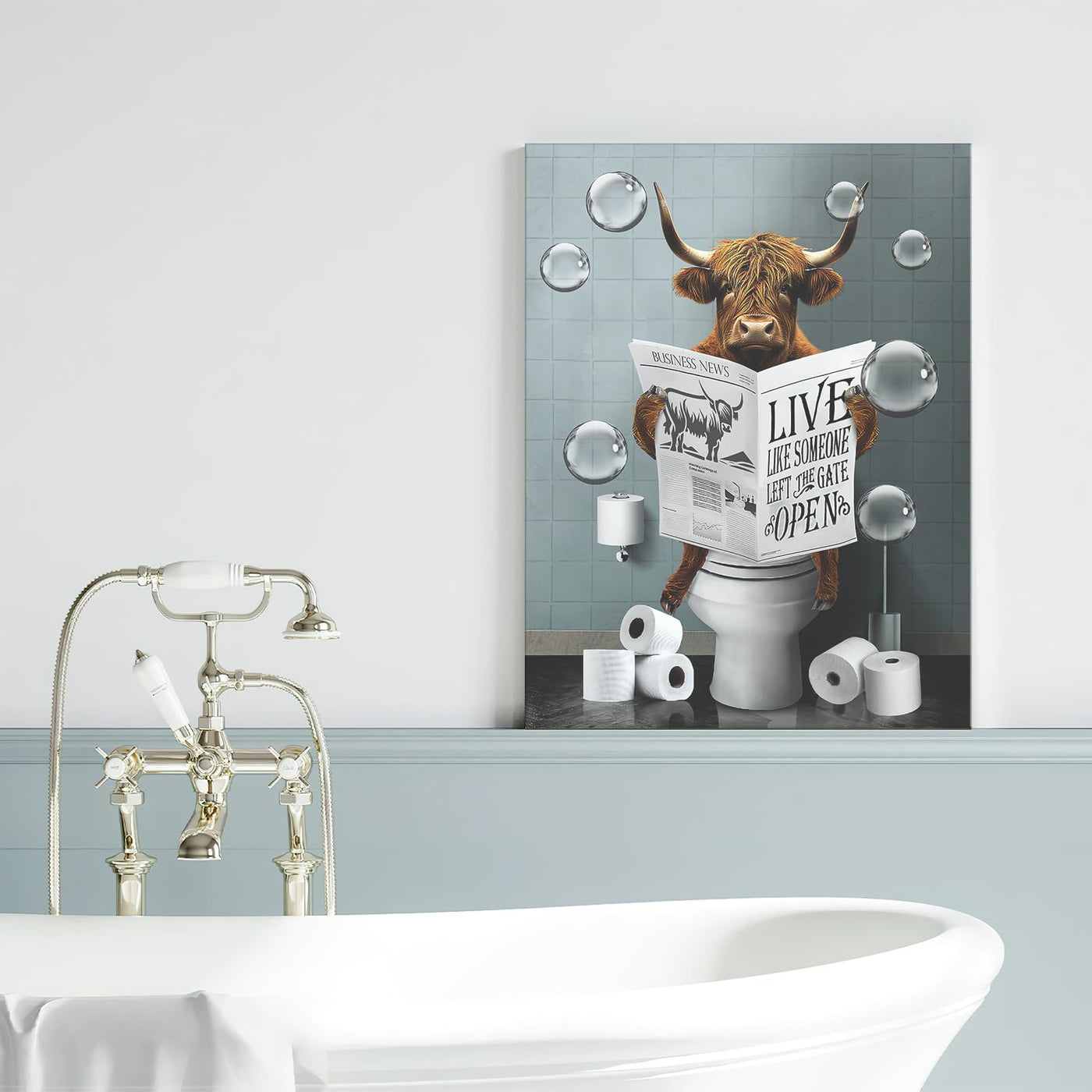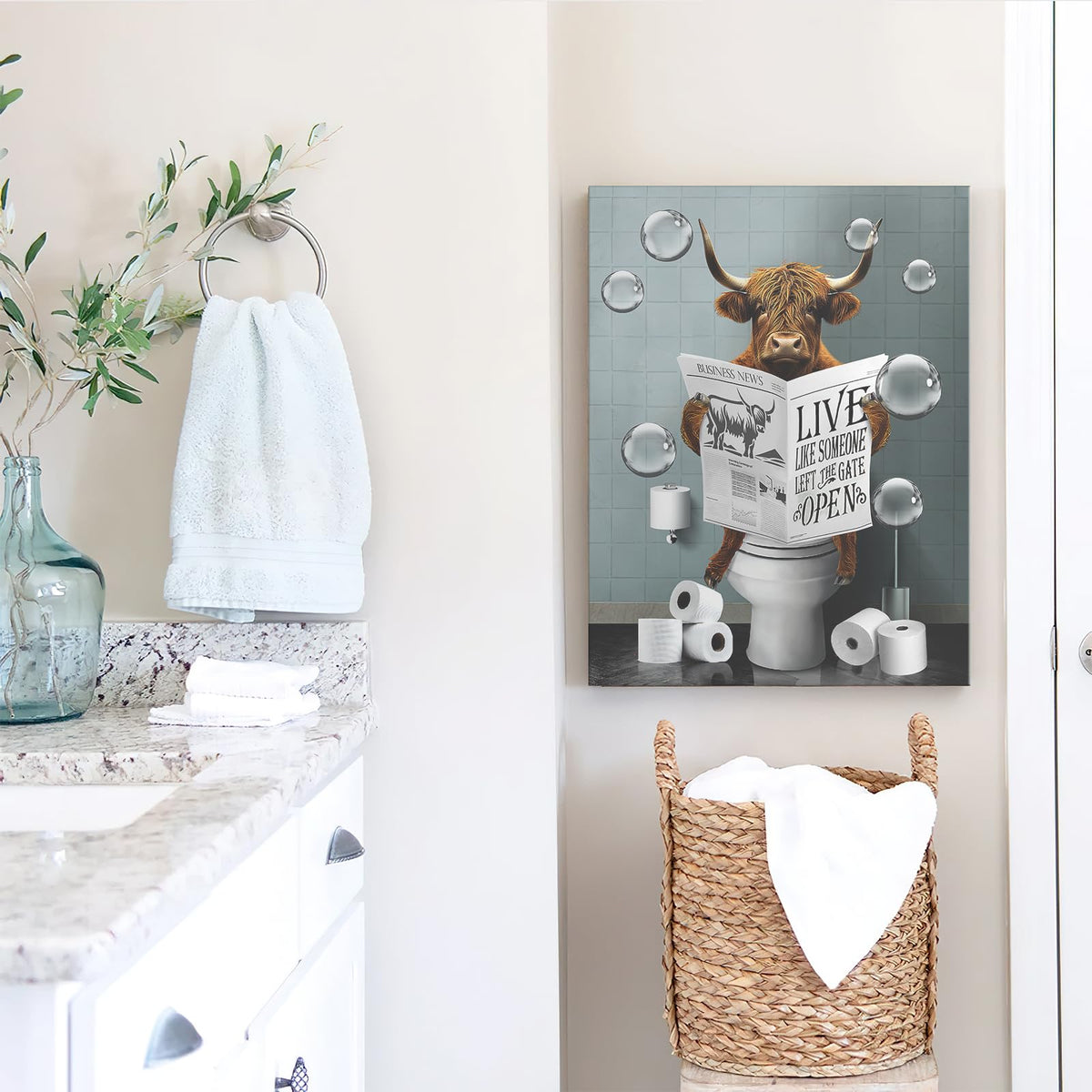 Funny Highland Cow In Toilet Wall Art Bathroom Pictures Wall Decor Farmhouse Bathroom Cow Painting For Toilet Bathroom Animals A