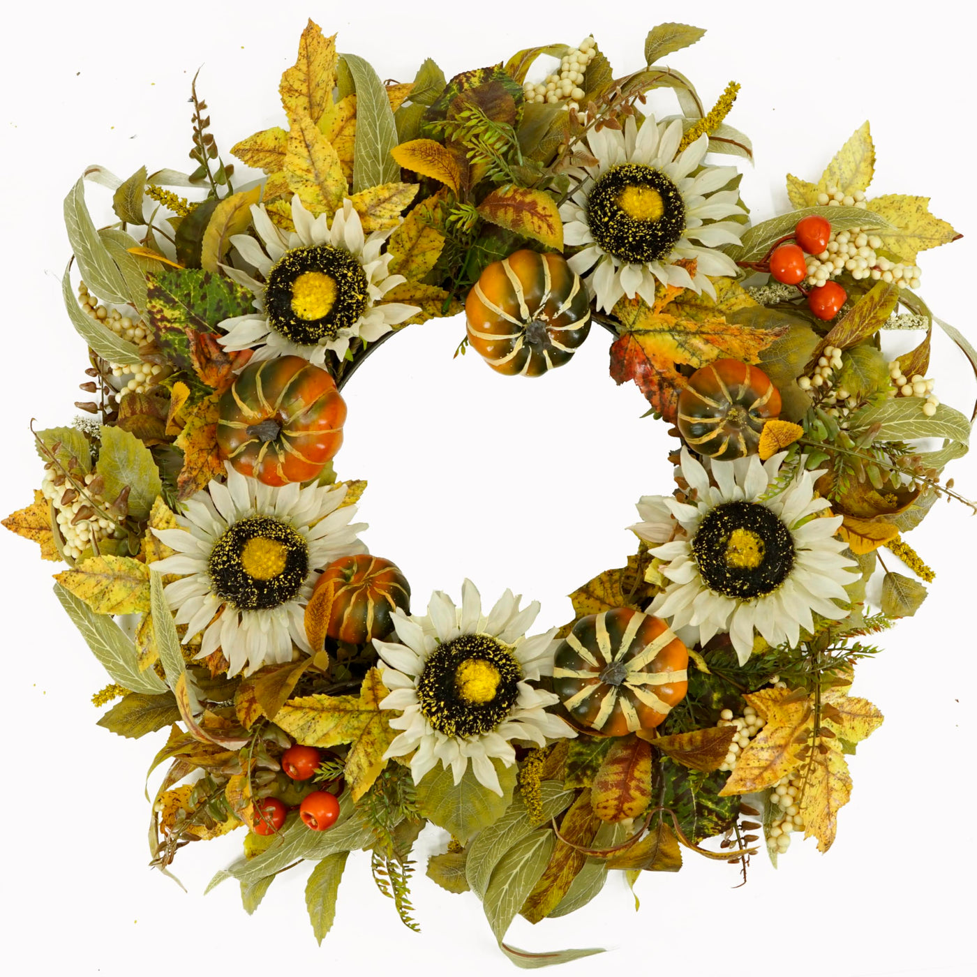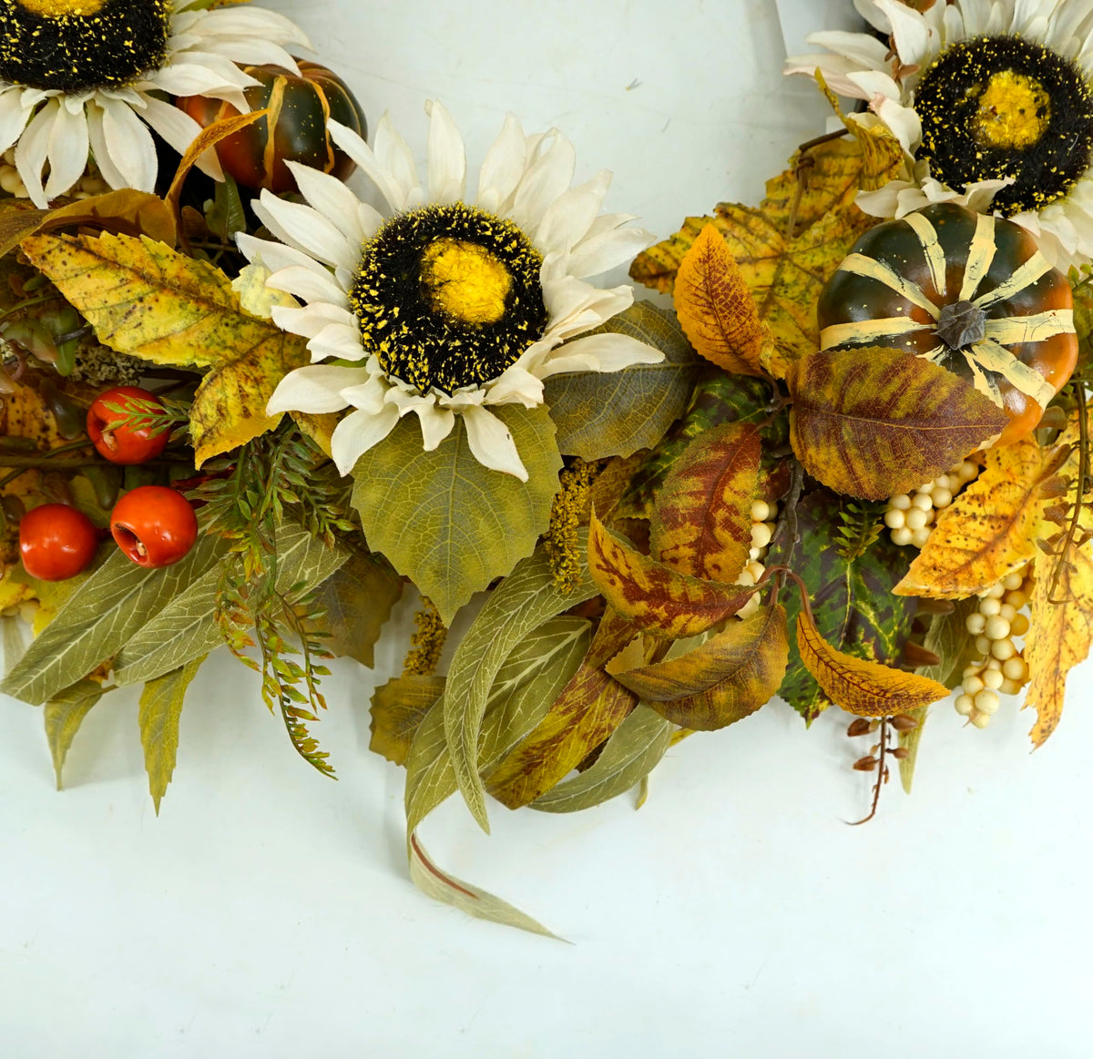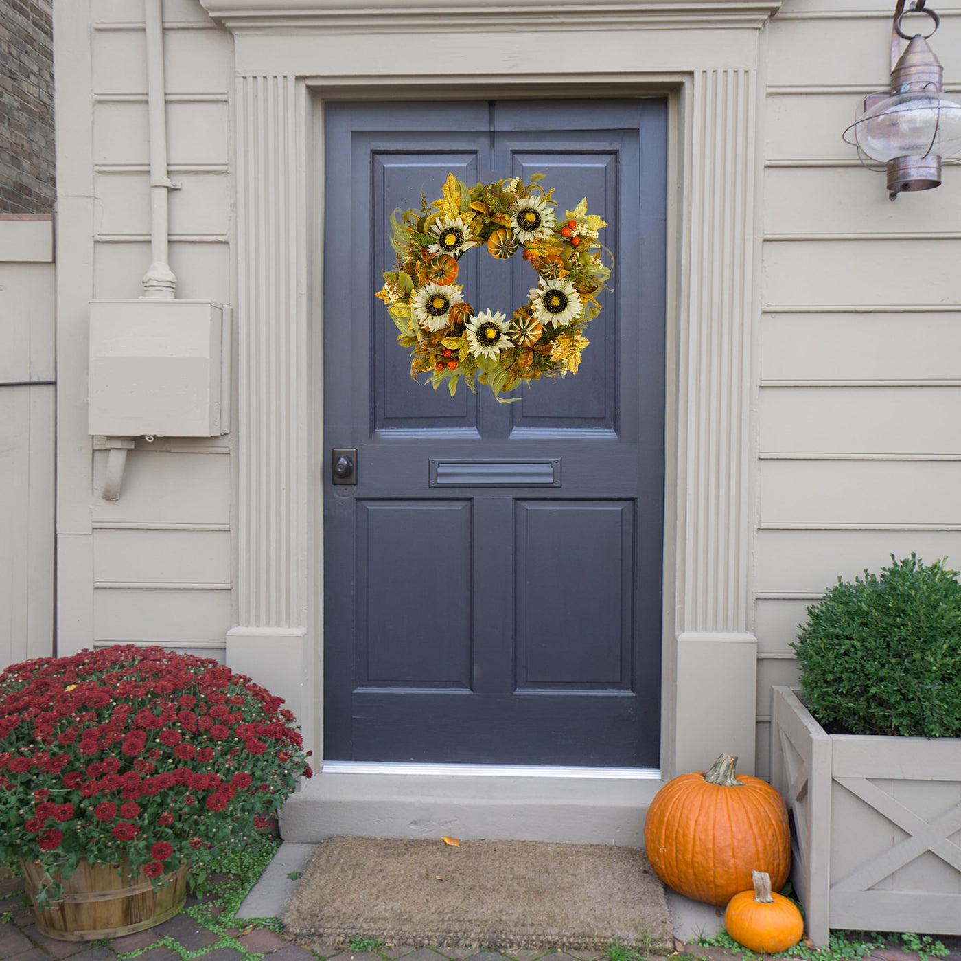 Furisin Fall Wreaths for Front Door 22 inch Autumn Thanksgiving Wreath with Pumpkin,Sunflower,Fall Leaves for Front Door Indoor