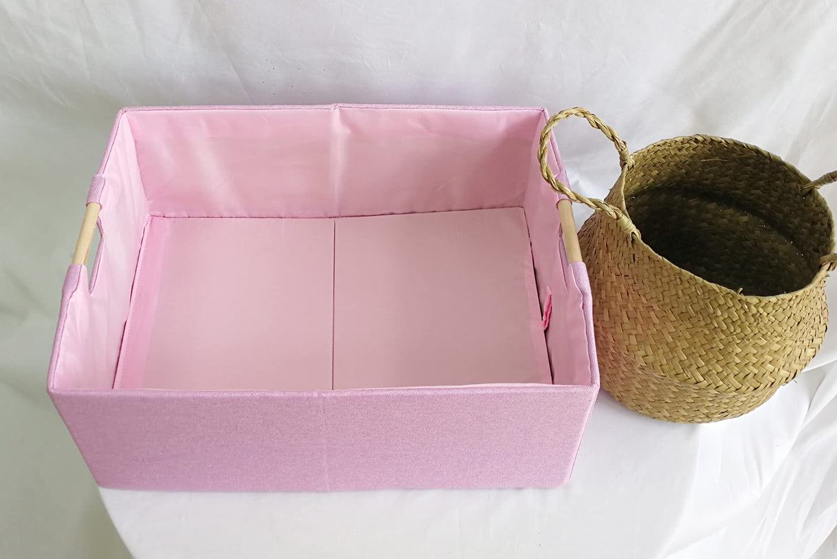 Fuuloxe Storage Bin For Shelves Rectangle Pink Closet Baskets Foldable Box With Handles Storage Bins Storage Boxes For Kids Home