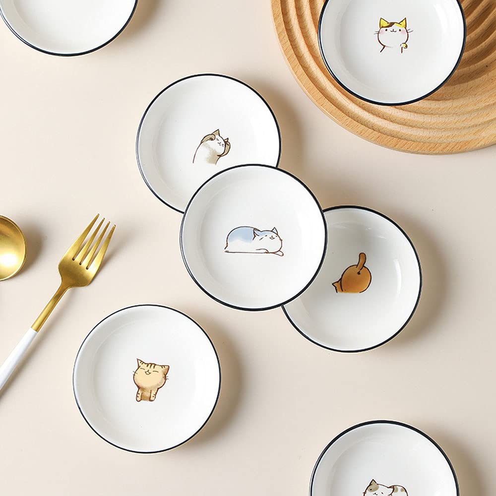 Fuyu 6Pcs Cute Cat Multipurpose Ceramic Sauce Dish Seasoning Dishes Sushi Dipping Bowl Appetizer Plates