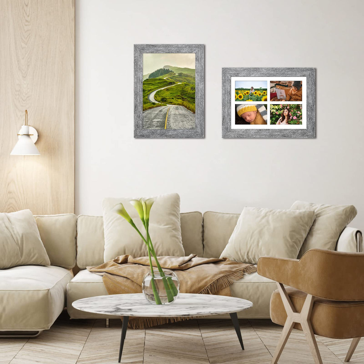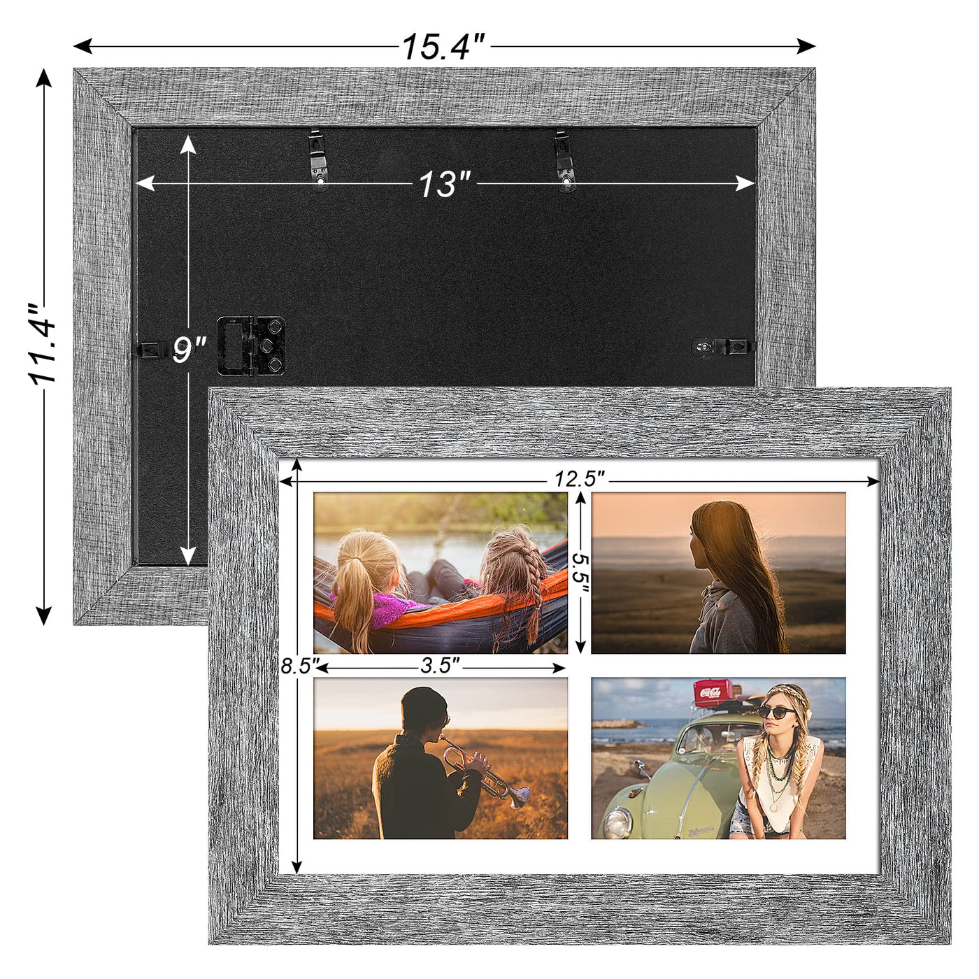 Quality :The 9x13 picture frame with plexiglass cover your photos, which bring safe and higher definition. acrylic-resin (PS) construction, this durable frame keeps your meaningful memories and important moments in life. | Style match : This 9x13 picture frame makes personalizing your photo display wall fun and easy to achieve. Stylish wood colors - sure to match your home decor style and your gallery wall vision. | Simple and modern design :These understated Grey Wood Grain picture frames are perfect for any photo and print. Featuring a classic and simple design, they are suitable for decorating living rooms, bedrooms, childrens rooms, gallery walls, offices and any space. | Best gift idea :This 9x13 frame includes a white beveled mat with 4 openings to display 4 4x6 photos, perfect for displaying your favorite memories so you dont forget the special moments in your life. It is perfect for collage frames and also for Valentines Day, Christmas, New Years Day, Mothers Day, Fathers Day, Memorial Day, Thanksgiving, Birthdays, Wedding collage frames and other occasions, give this beautiful large gallery wall frame set to your family, friends, others. | Prorective packaging :Exquisite and safe packaging that helps ensure safe delivery of fragile and glass items. No reason refund.Click and add to cart now.
