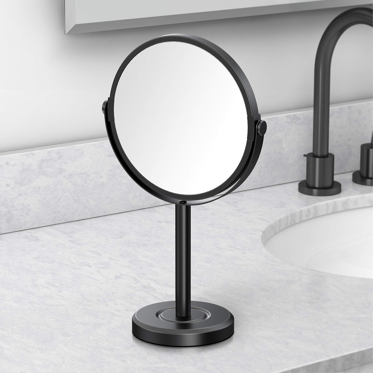 - Q: What magnification options does this mirror offer? A: This two-sided mirror features 3X magnification on one side.
