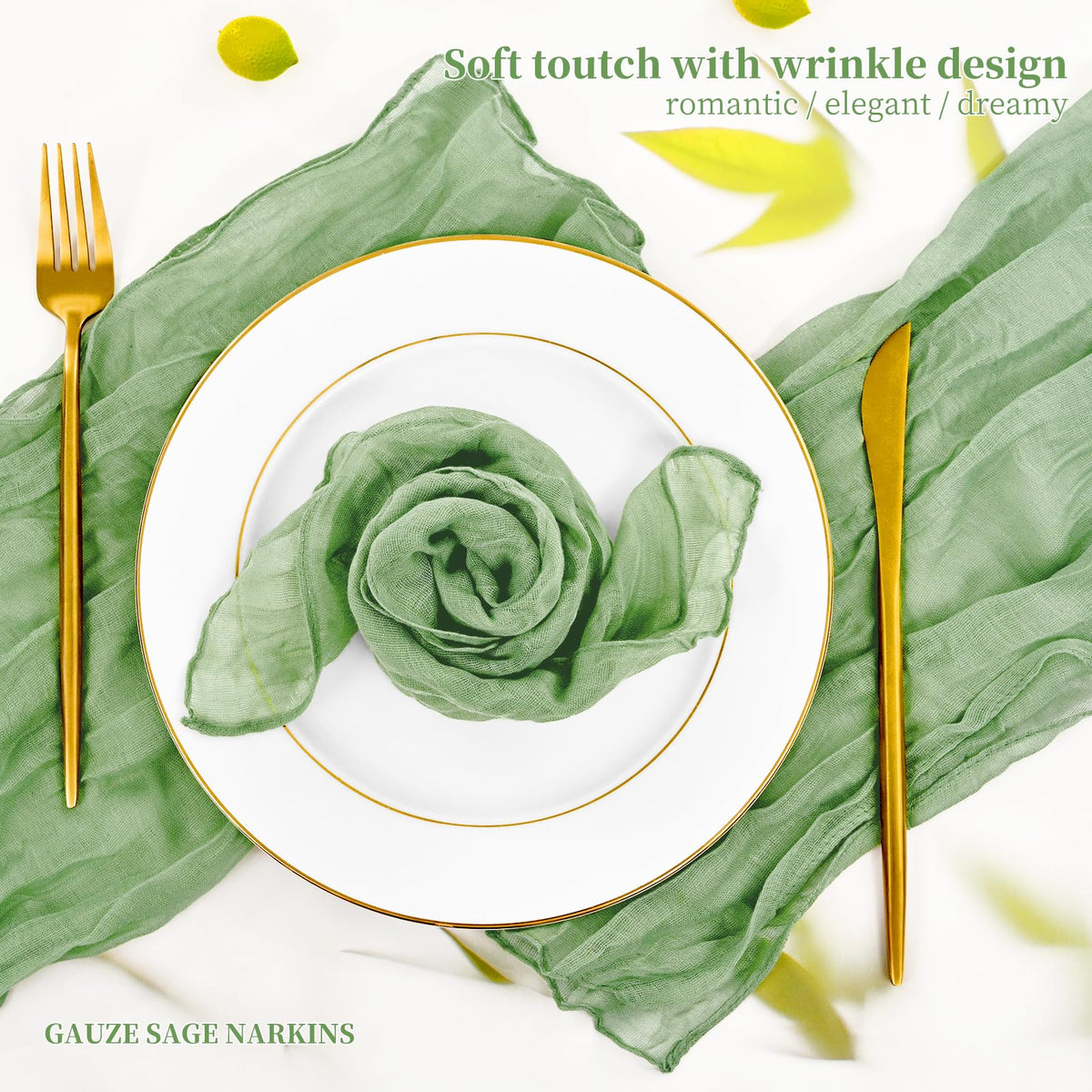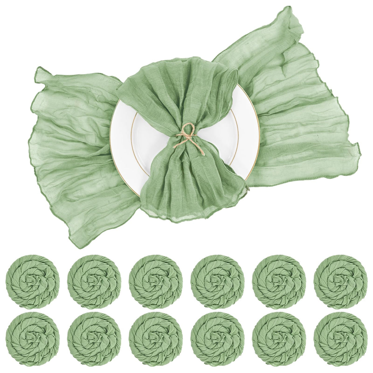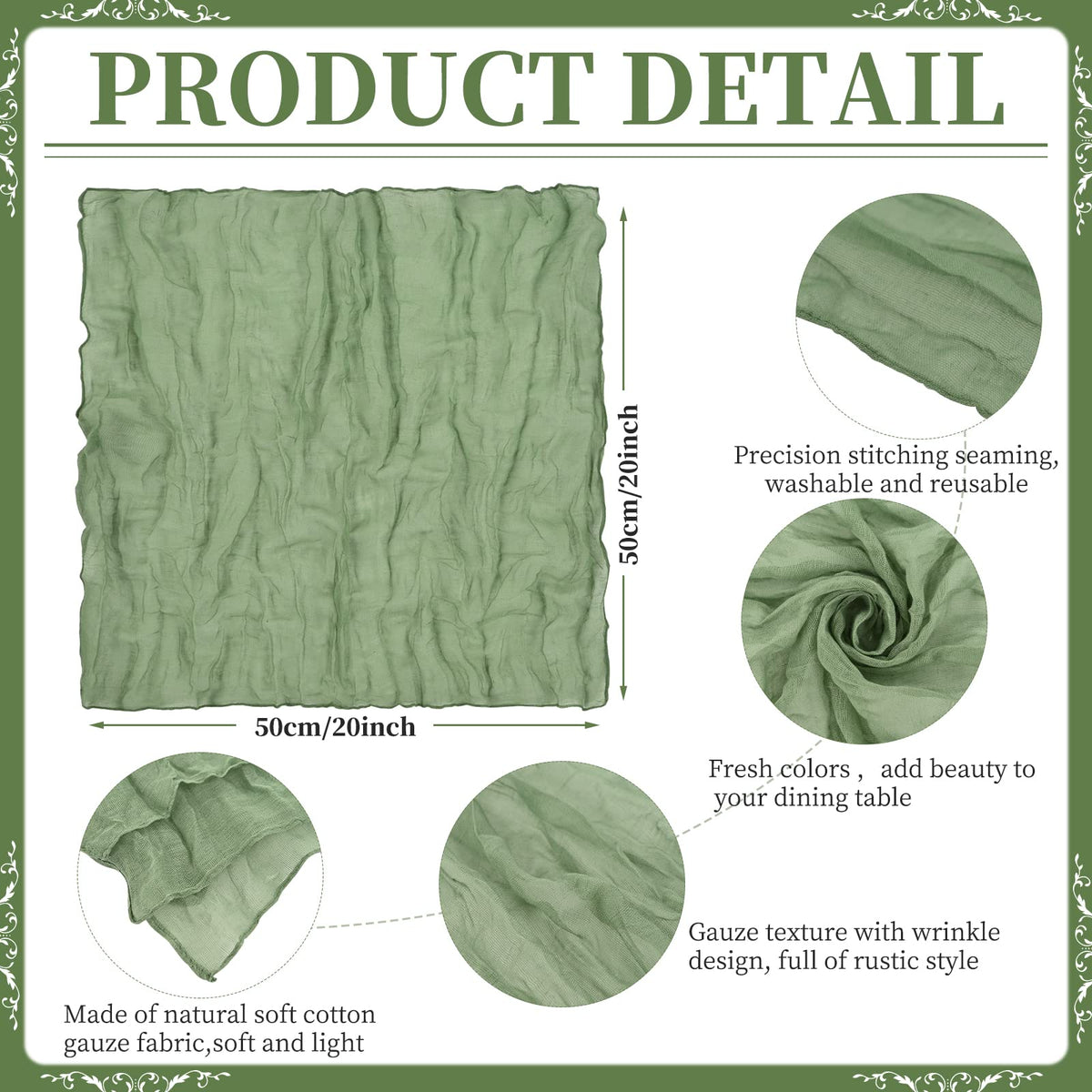 Gauze Cheesecloth Napkins Set Of 42, 20 X 20 Inch Sage Green Rustic Boho Dinner Napkins Wrinkled Rustic Linen Napkins Decorative