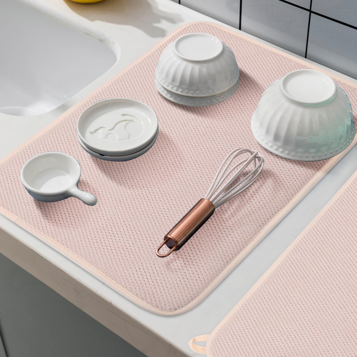- Q: Can I use the mat for drying larger items? A: Yes, the large size of the mat allows you to dry a whole stack of dishes at once, making it suitable for both small and larger items.