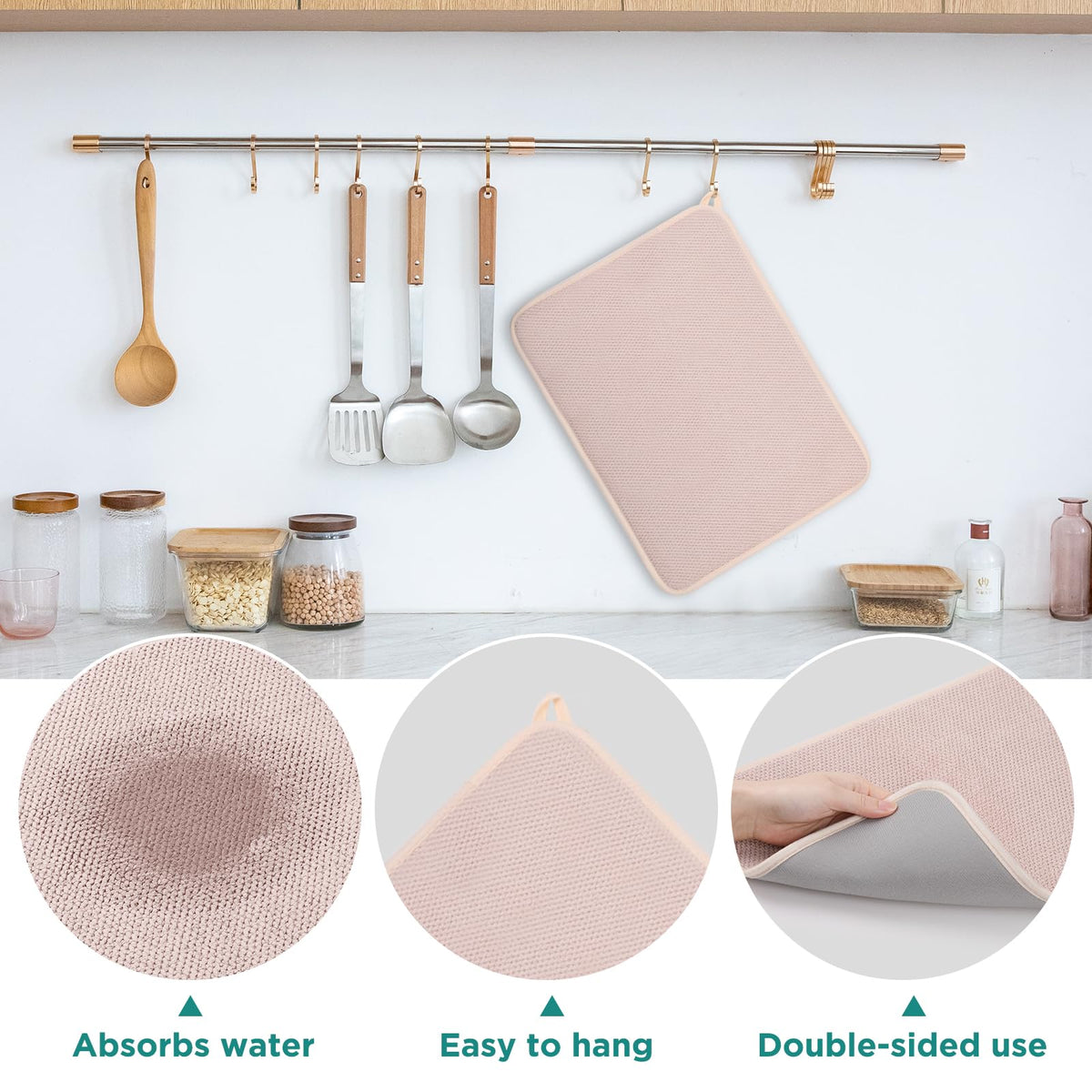 - Q: How absorbent is the dish drying mat? A: The mat is made from high-quality, ultra-absorbent microfiber materials that quickly soak up excess water from dishes, glasses, and utensils.