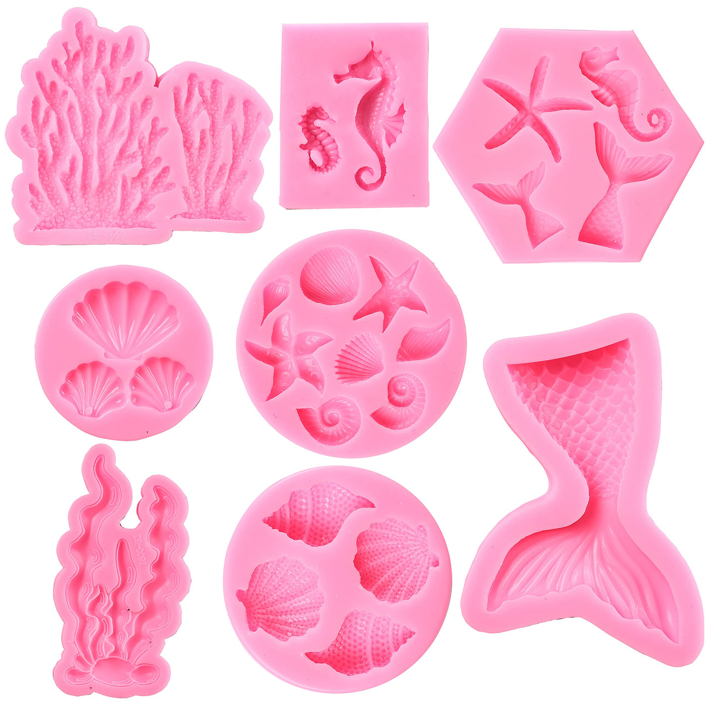 Gelifatle Mermaid Theme Cake Mold, Mermaid, Shell, Seaweed, Coral Silicone Mold Cupcake Toppers Mold For Candy,Chocolate,Fondant