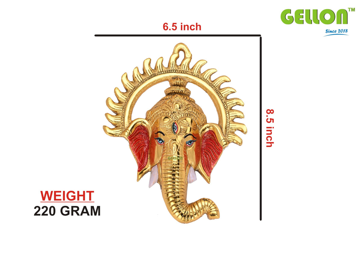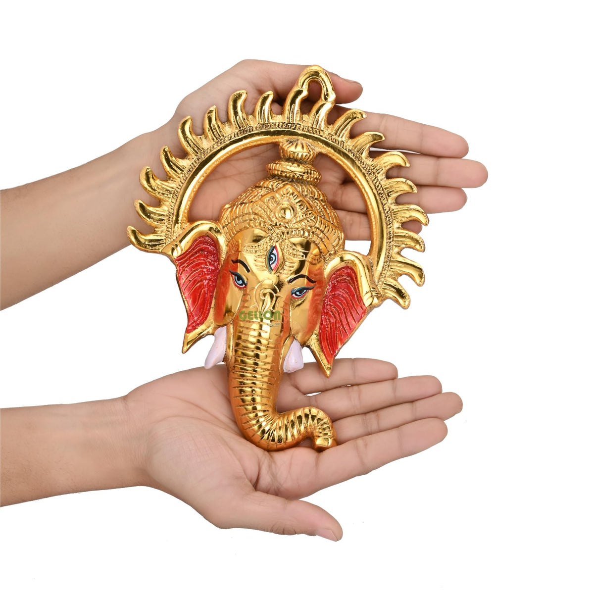 Gellon Wall Hanging Surya Ganesha Statue In Gold Finish, Ganesha Statue - Ganesha Murti Ganesha For Wall Dcor Ganesh In Multico