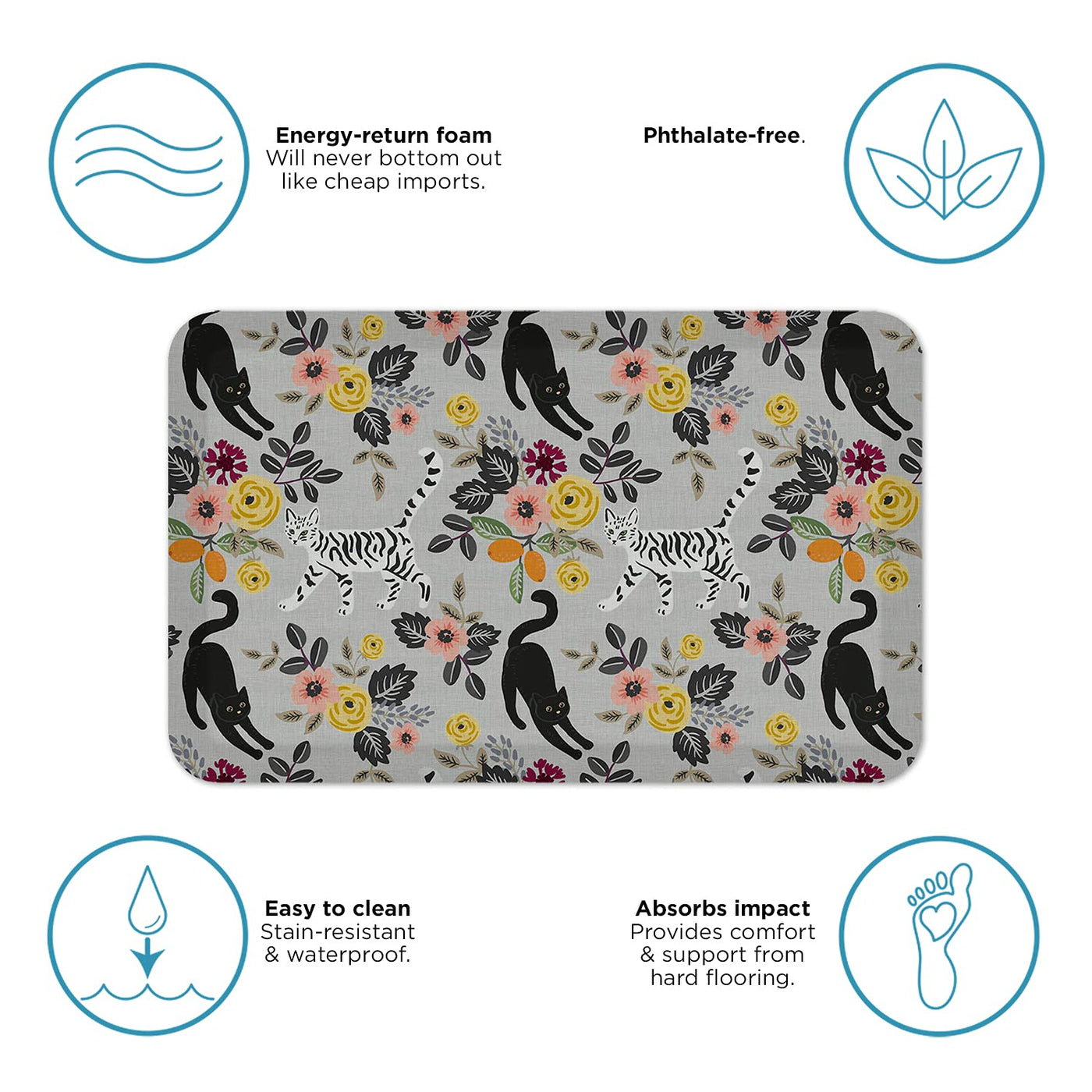 GelPro Designer Comfort Anti-Fatigue Kitchen Floor Mat 20 x 32 Funky Feline Grey Tabby