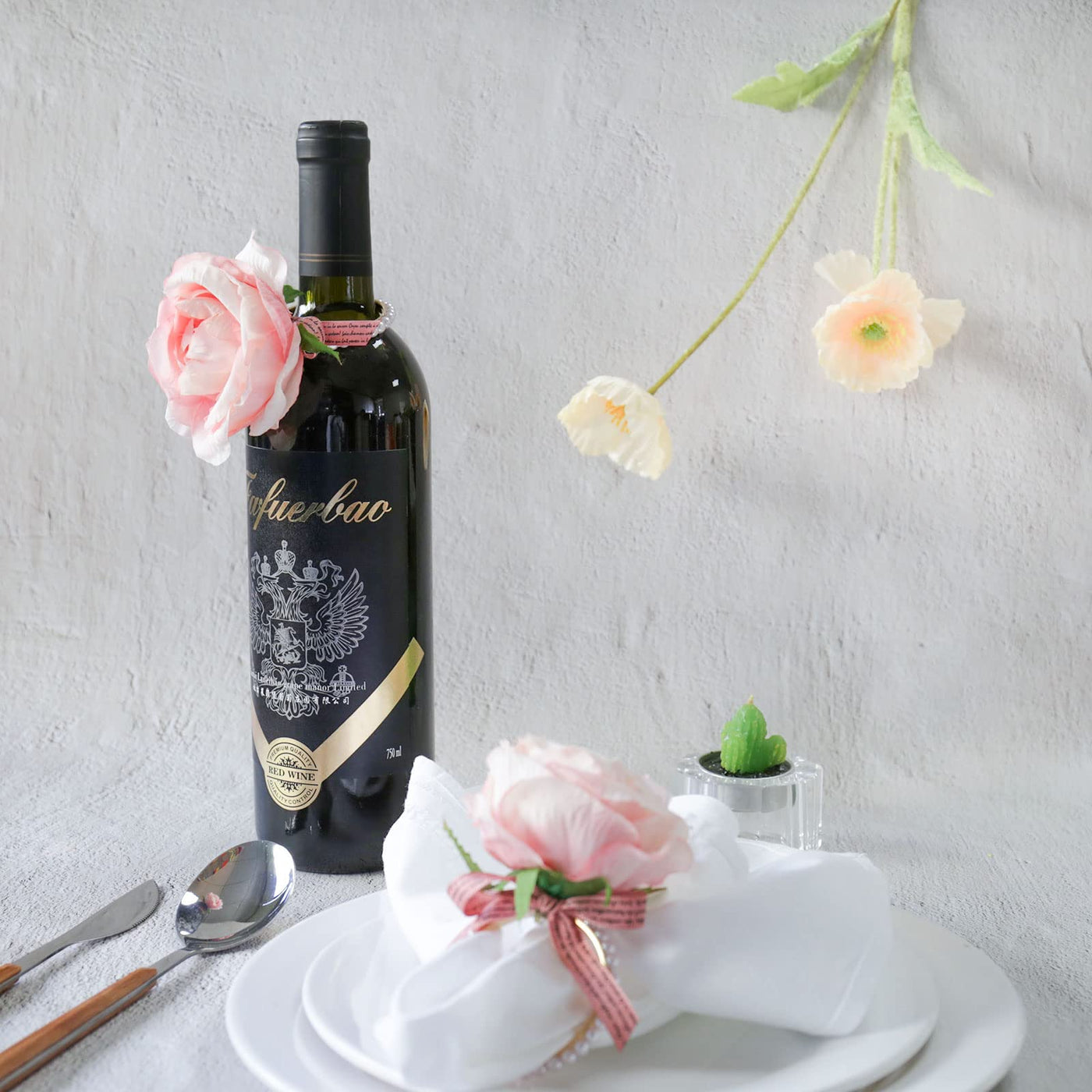 - Q: What makes these napkin rings a good choice for table decoration? A: Their unique design featuring rose flowers and pearl accents adds a touch of elegance and charm to any table setting.