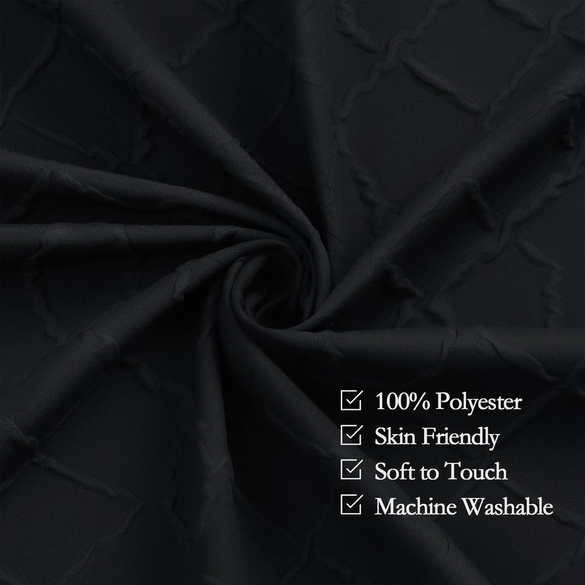 • Q: What design features does the Gibelle Black Shower Curtain have? A: The curtain features a unique 3D embossed texture that creates a ruffle-like effect, adding an elegant touch to your bathroom.